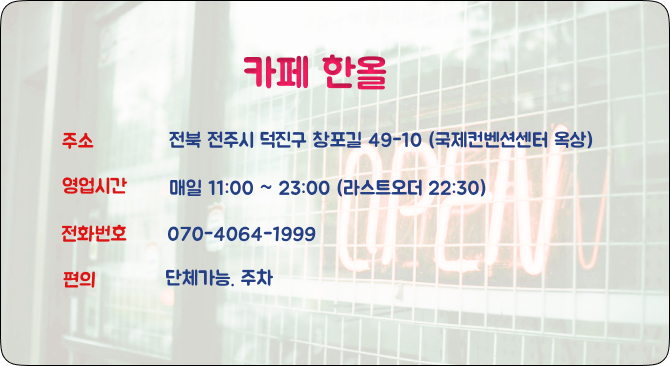 전주에서 집에 가기 전 마지막 코스로 선택한 카페 한올은 정말 완벽했어요!