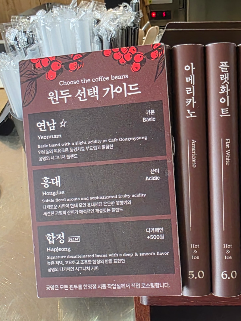 - 음료 : 아메리카노, 공명라떼, 공명밀크티 등