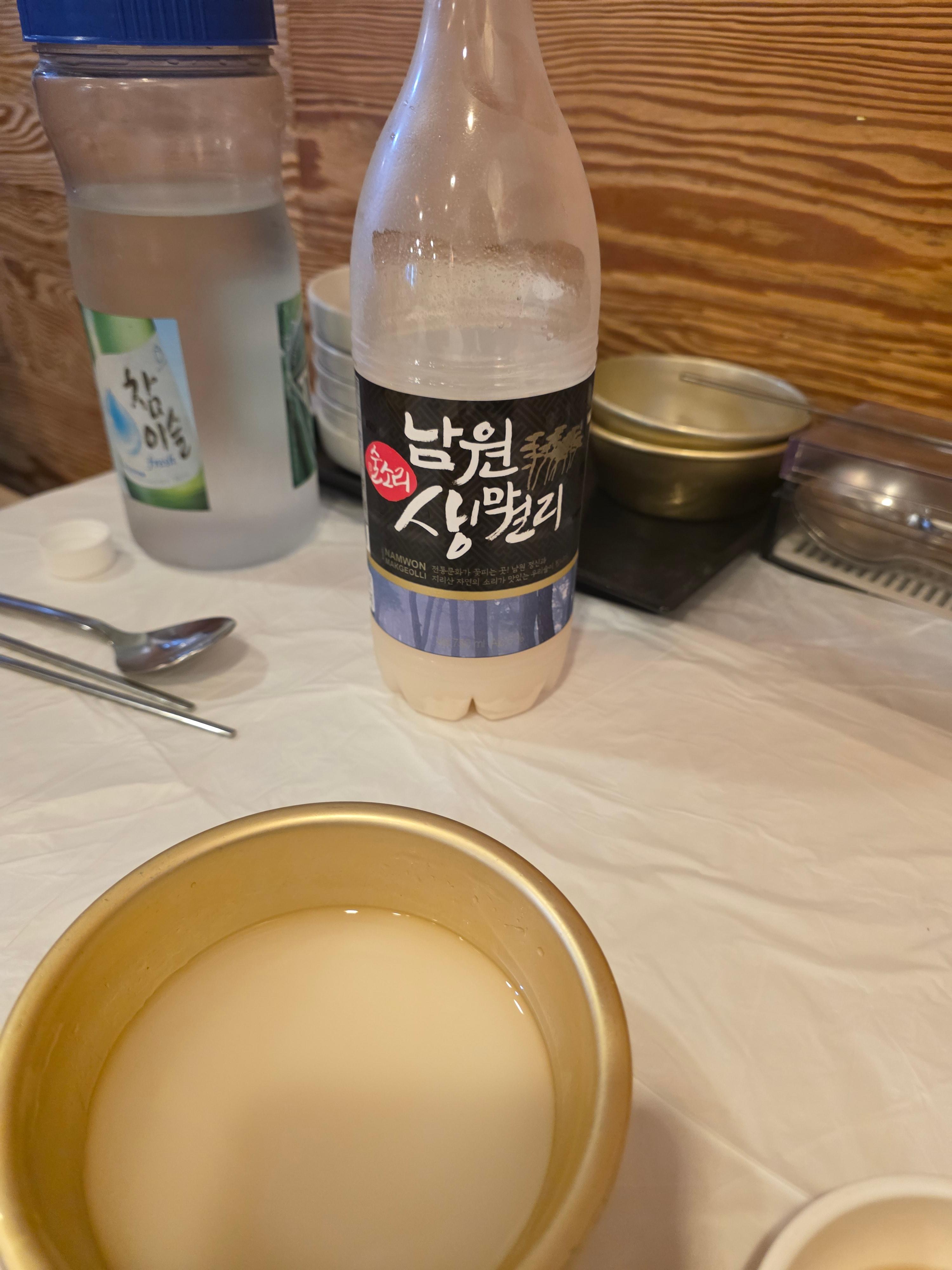 역시 전엔 막걸리죠! 전주 남원막걸리는 살짝 달달하면서도 부드러운 목 넘김이 특징이에요.