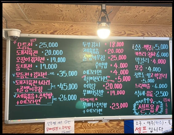 우리가 주문한 메뉴 : 모둠전(25000원) + 남원막걸리(4500원)