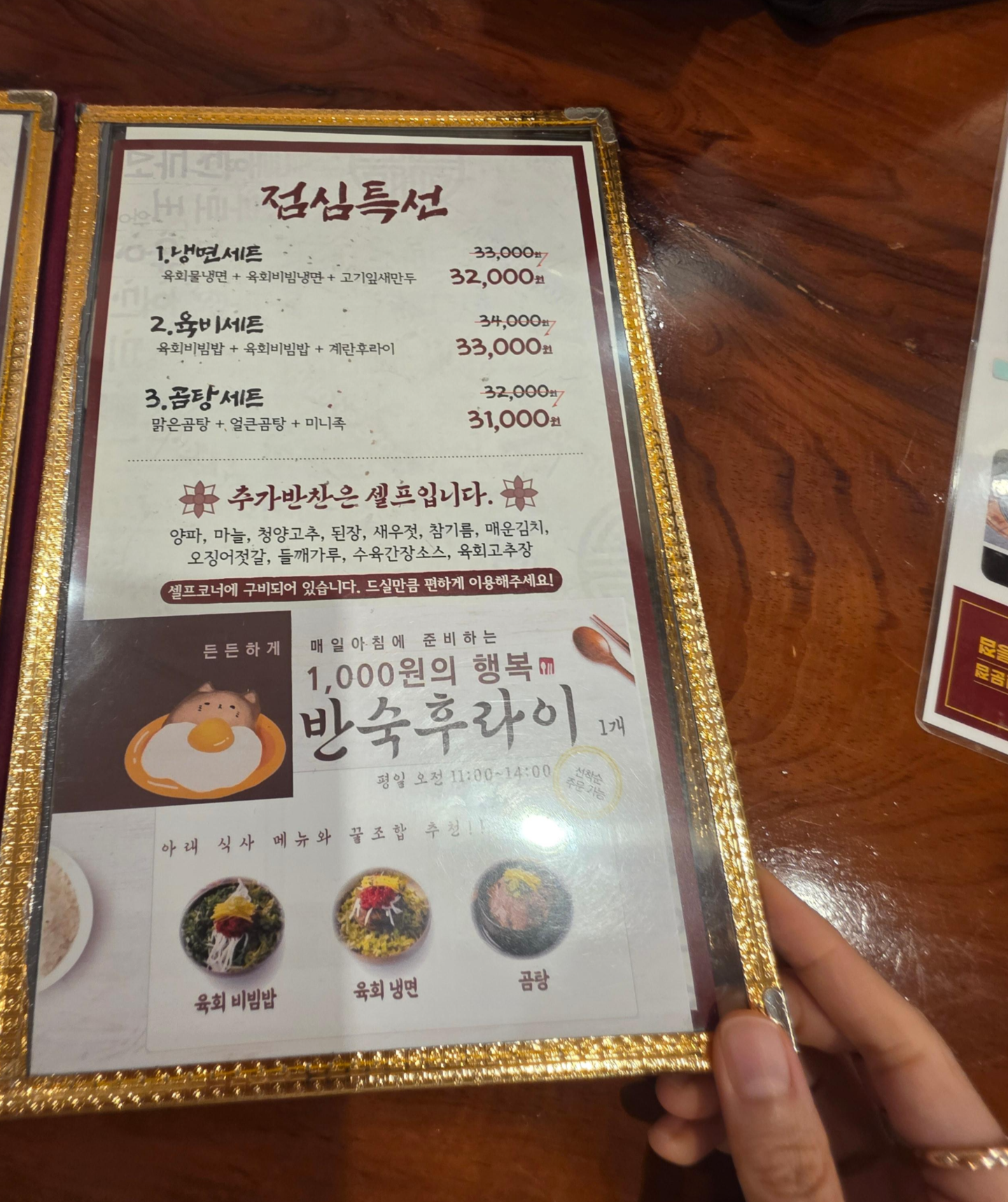 점심 특선 메뉴로 다양하게 즐길수있도록 있고 셀프바가 있어서 가지고 추가반찬은 가지고 올수있어요.