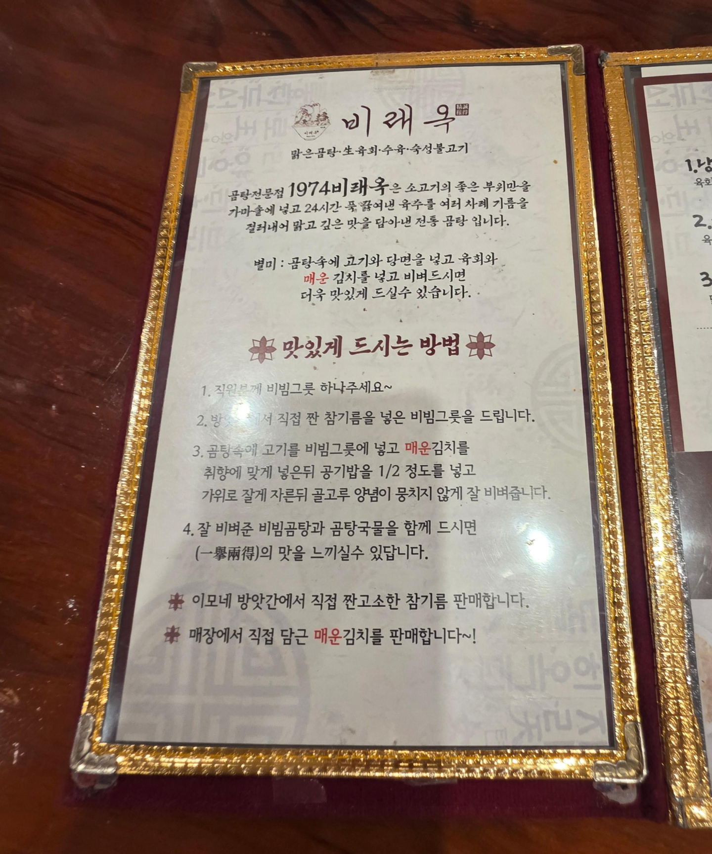 1974비래옥 메뉴판 구경하기