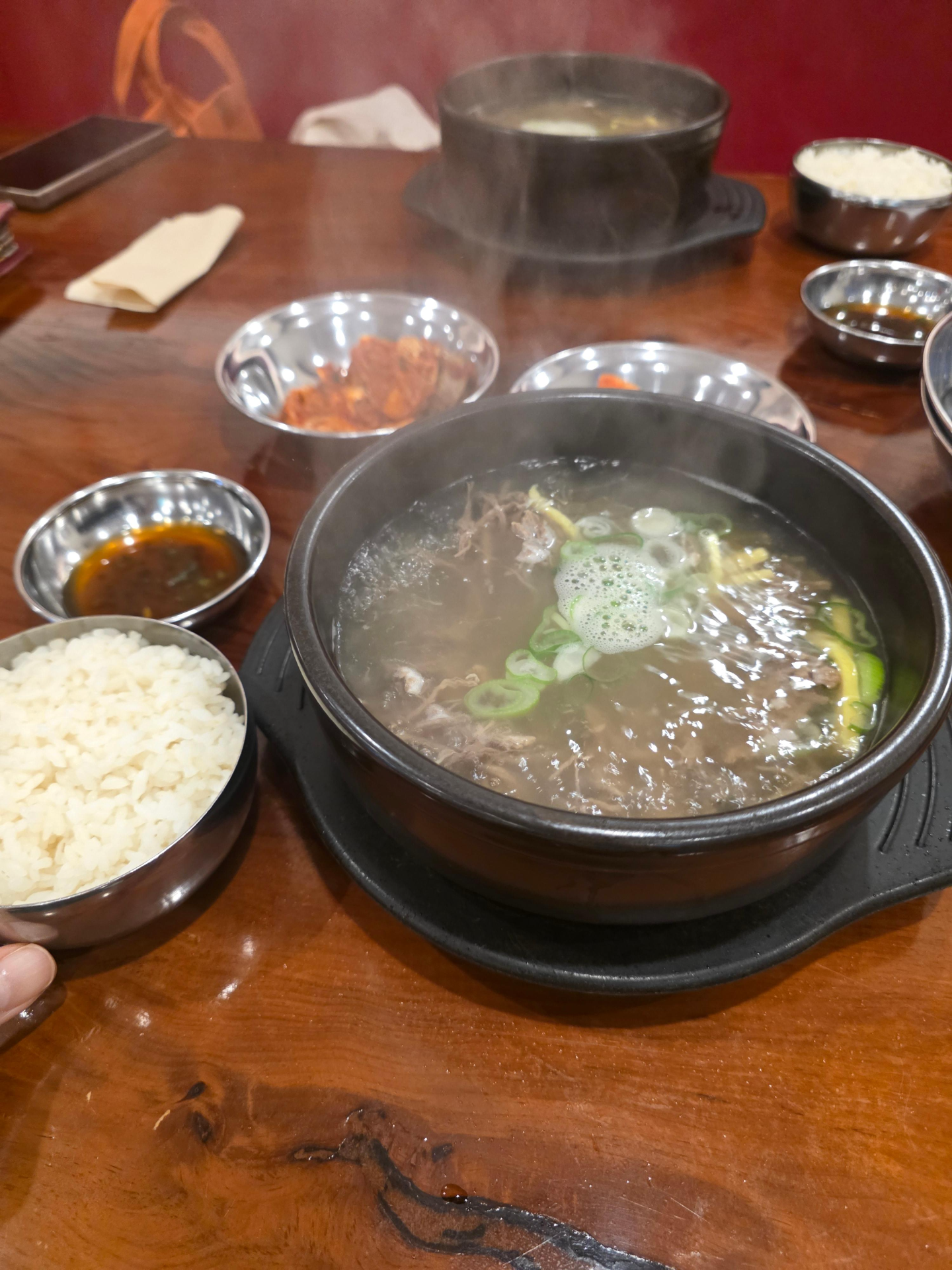 와... 진짜 이 곰탕은 미쳤어요! 보글보글 끓어서 나오는데 고기 양이 정말 어마어마했어요. 고기와 당면만으로도 배가 부를 정도! 간장소스에 찍어먹으니까 완전 굿이었답니다.
