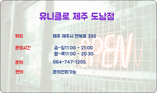 2. 유니클로 제주 도남점 매장정보