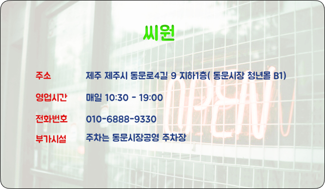 📍 주소: 제주 제주시 동문로 4길 9 지하 1층 (동문시장 청년몰 B1)