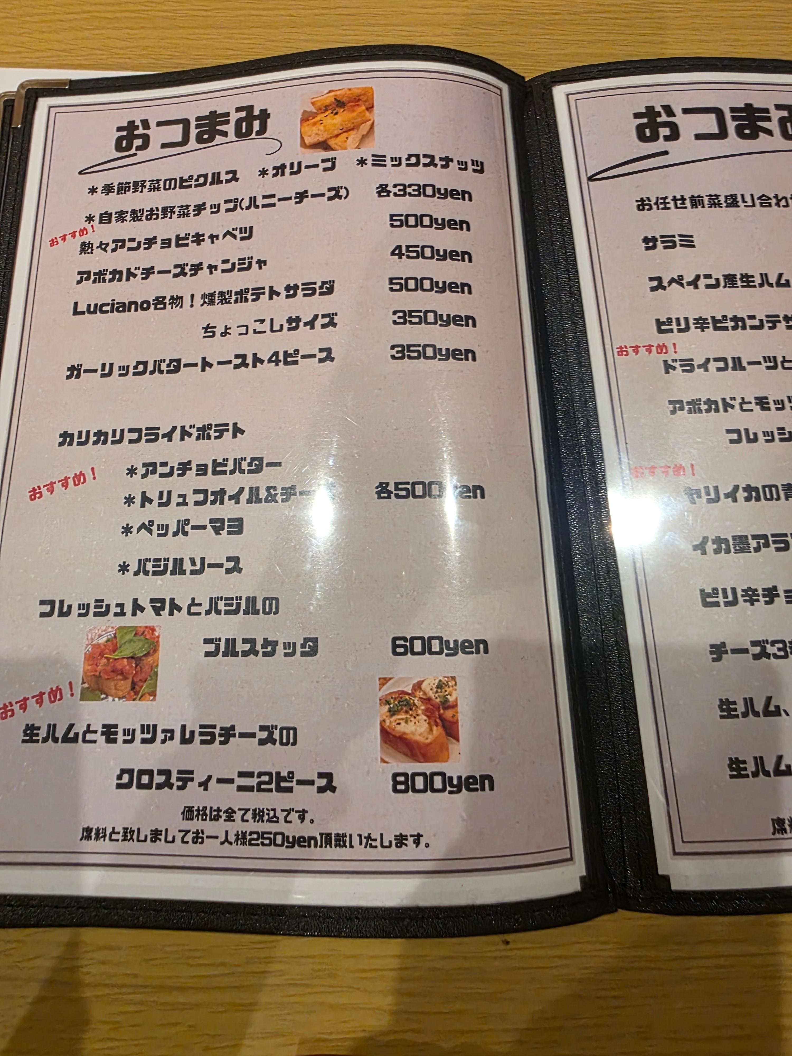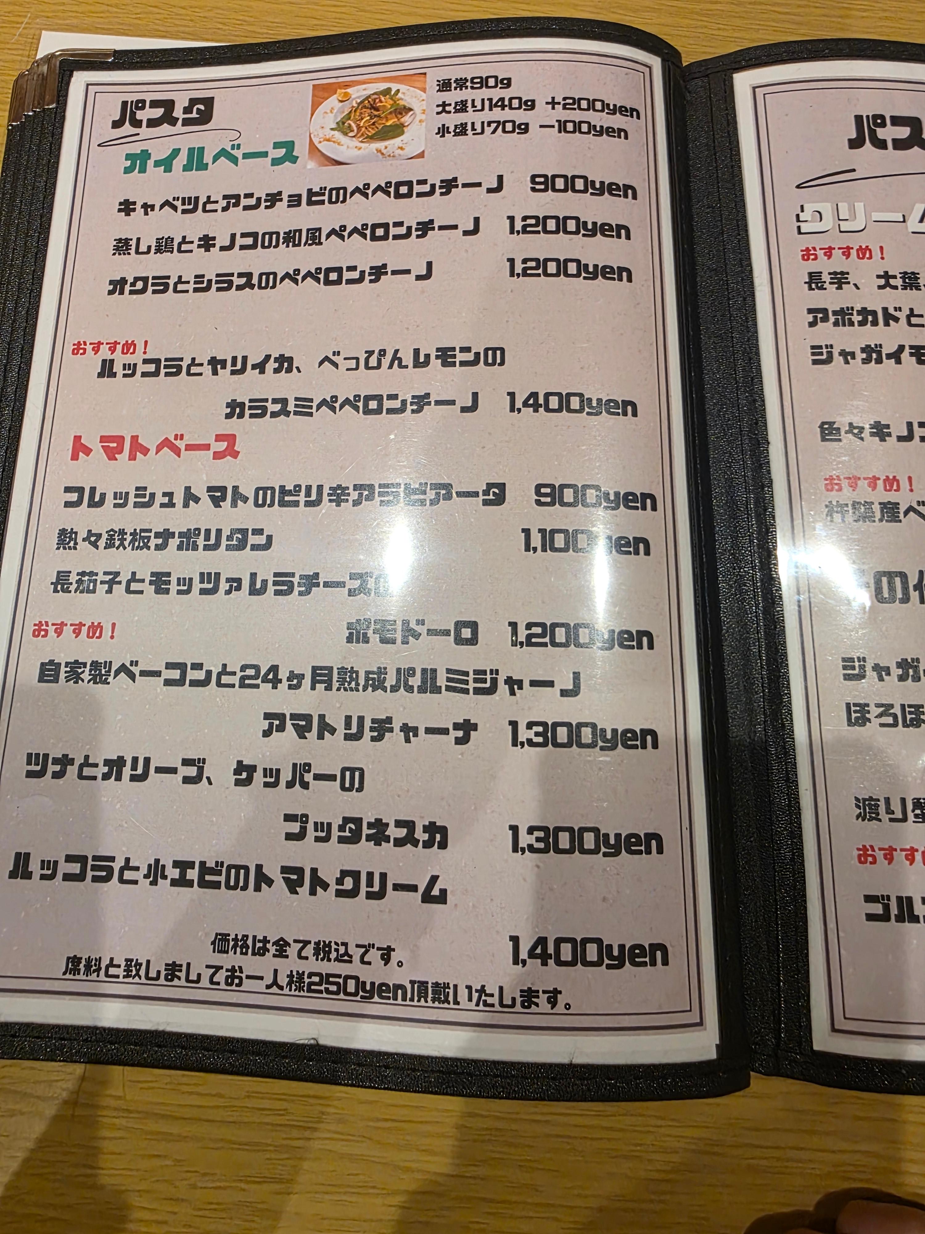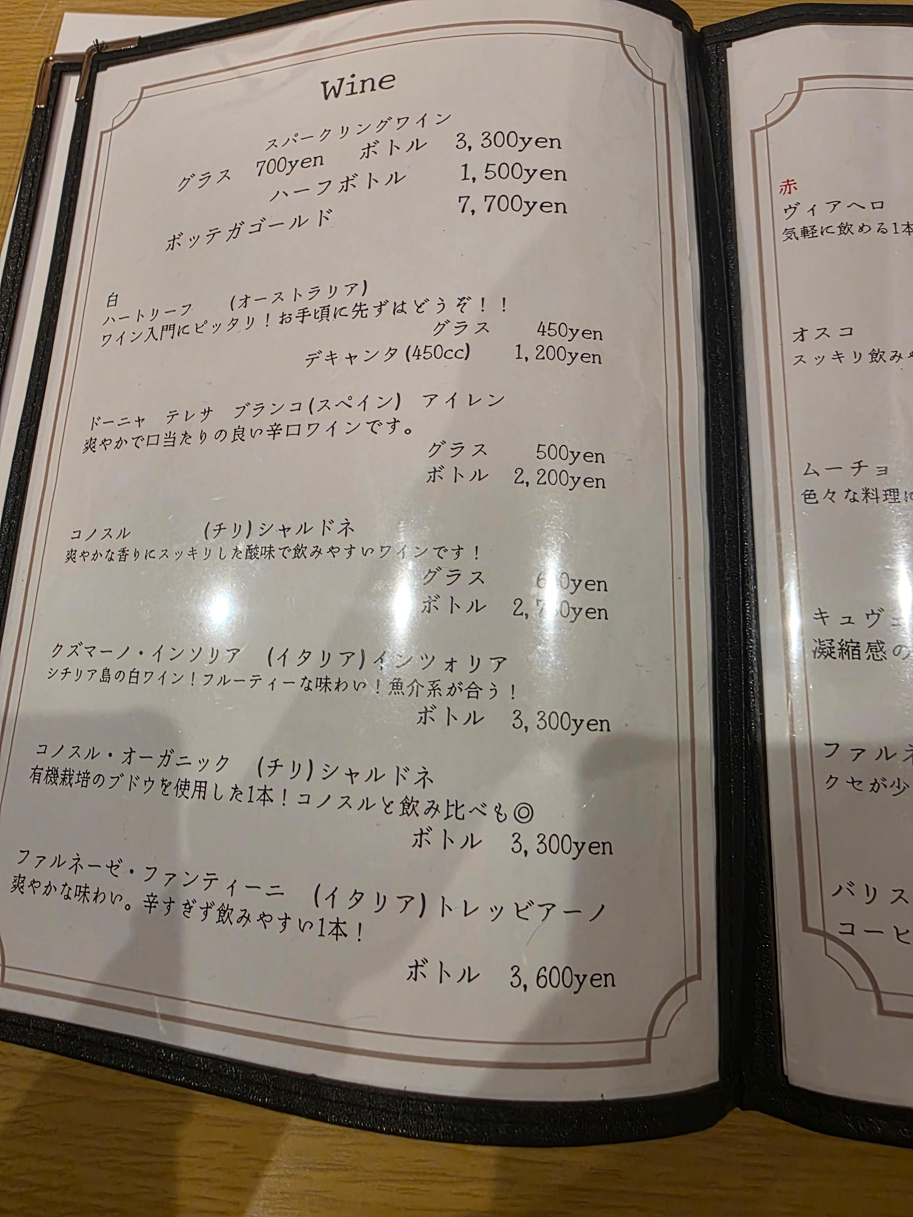 메뉴판을 훑어보면 , 튀김류, 냉파스타 등 와인과 딱 맞는 메뉴들이 눈에 띄어요. “아, 이 집은 와인을 위한 곳이구나”라는 생각이 들 정도였어요.