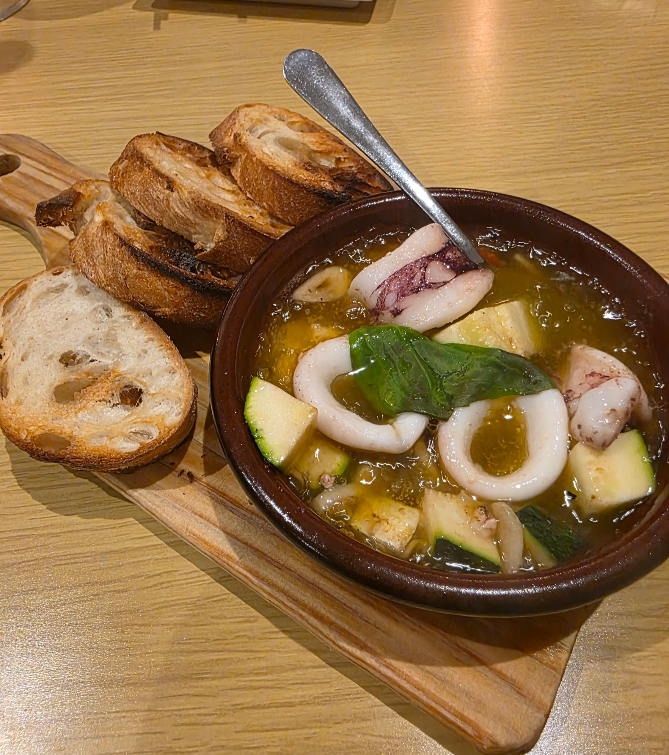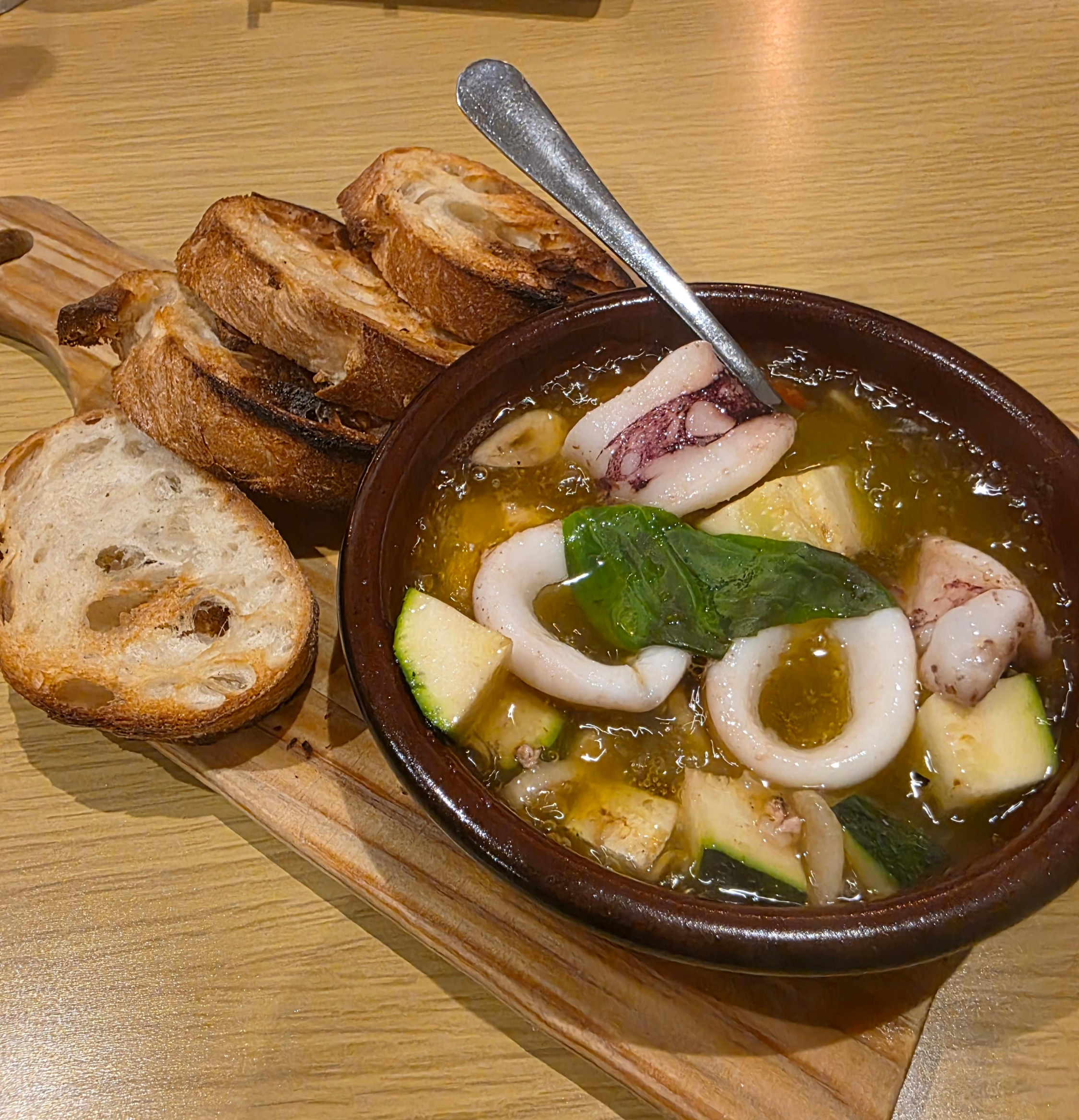 감바스는 원래 새우로 만드는 마늘 올리브오일 조림 요리이고, 제가 먹은 건 정확히 말하면 오징어 아히조였습니다.