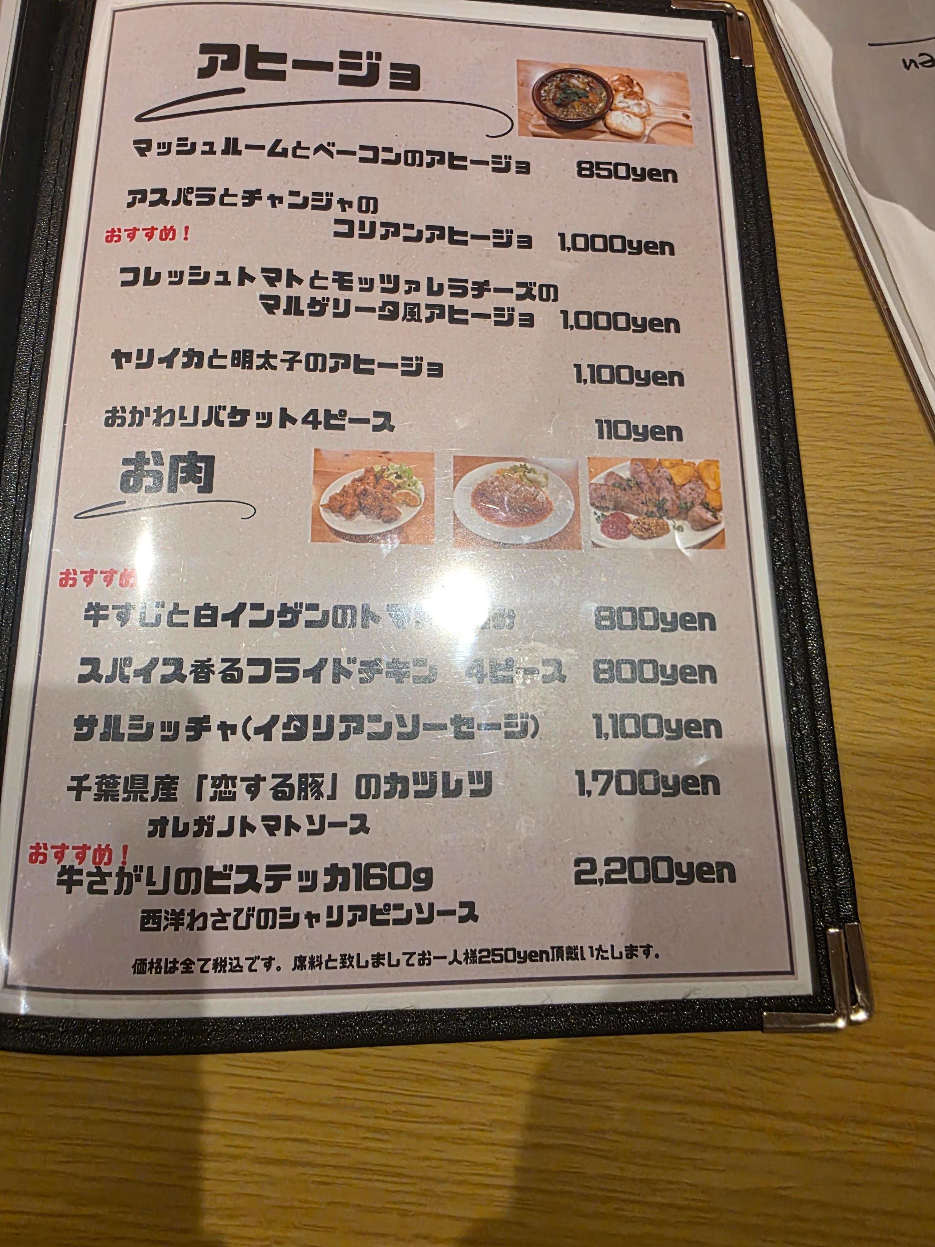 - ヤリイカと明太子のアヒージョ 1100円 → “오징어 & 명란 아히조 – 1100엔