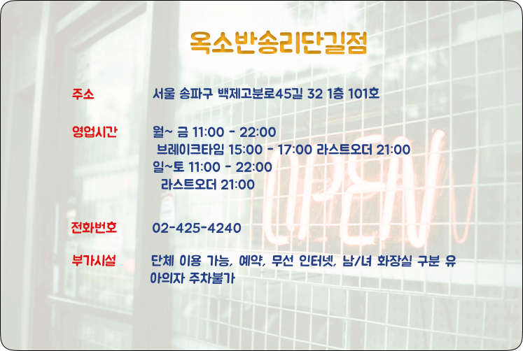 | 도산공원 퓨전 중국집 웍셔너리 매장정보 및 추천 메뉴 (1) | 2025.03.09 |