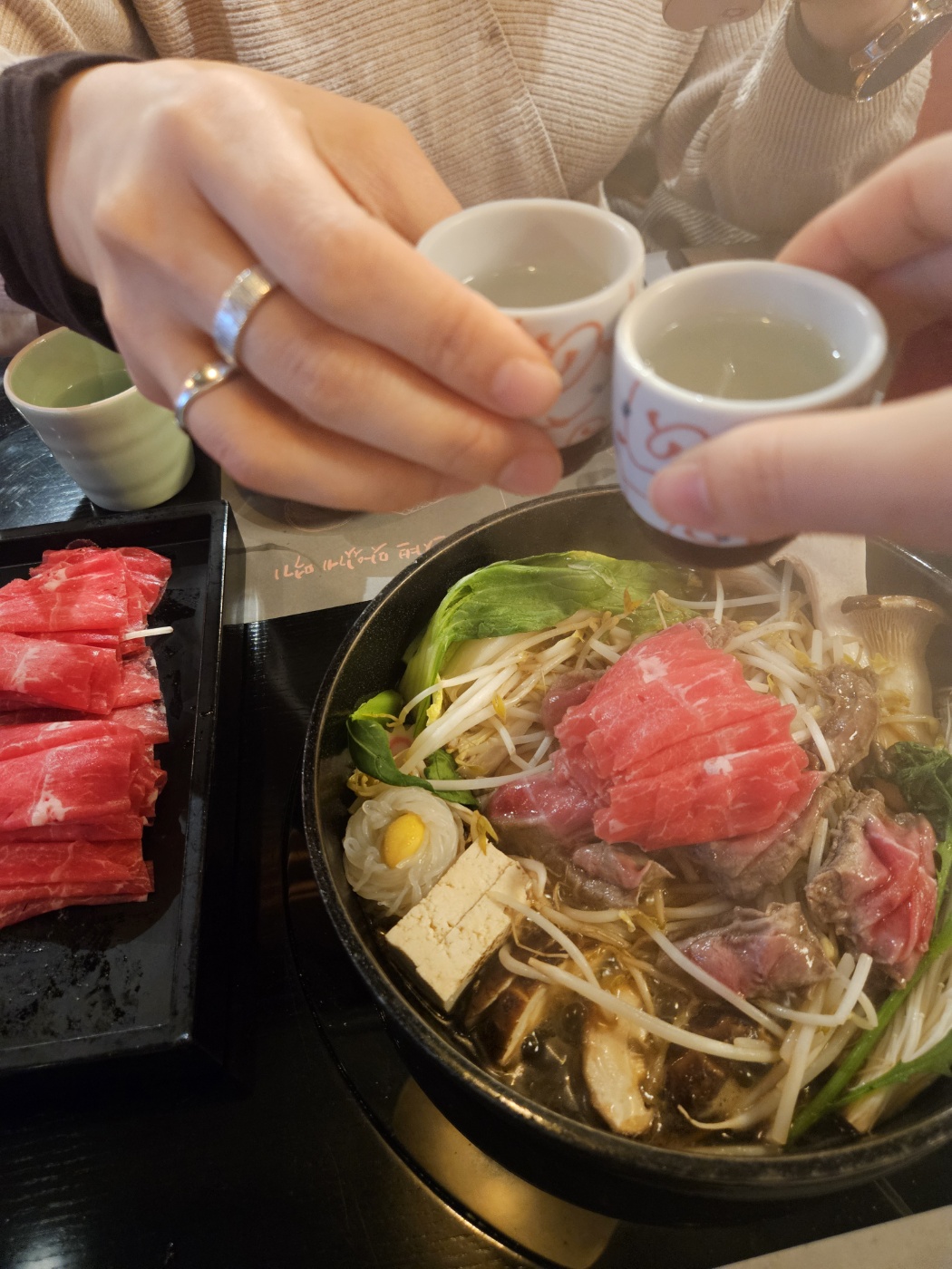 음료도 다양하게 준비되어 있는데. 특히 사케는 이곳의 인기 메뉴 중 하나예요. 부드러운 맛이 스끼야끼와 잘 어울려요.