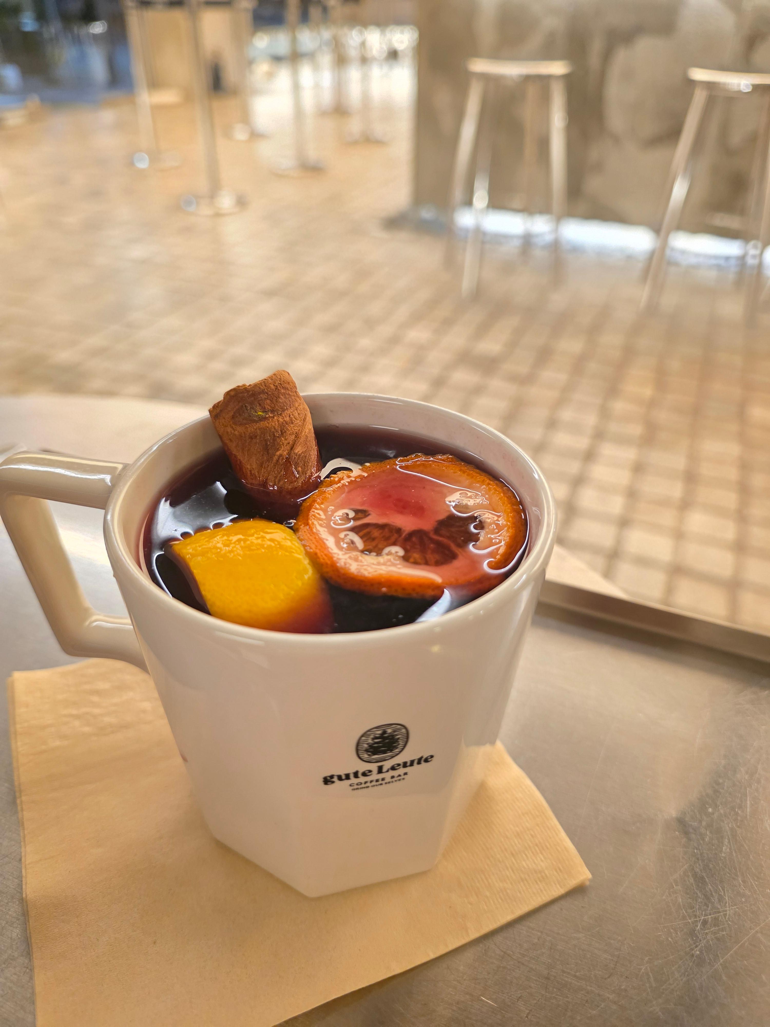 과일의 자연스러운 단맛과 와인의 풍미, 그리고 장미향이 조화롭게 어우러져서 한 잔 마시는 내내 행복했습니다. 핫으로만 제공된다는 점 참고하세요!
