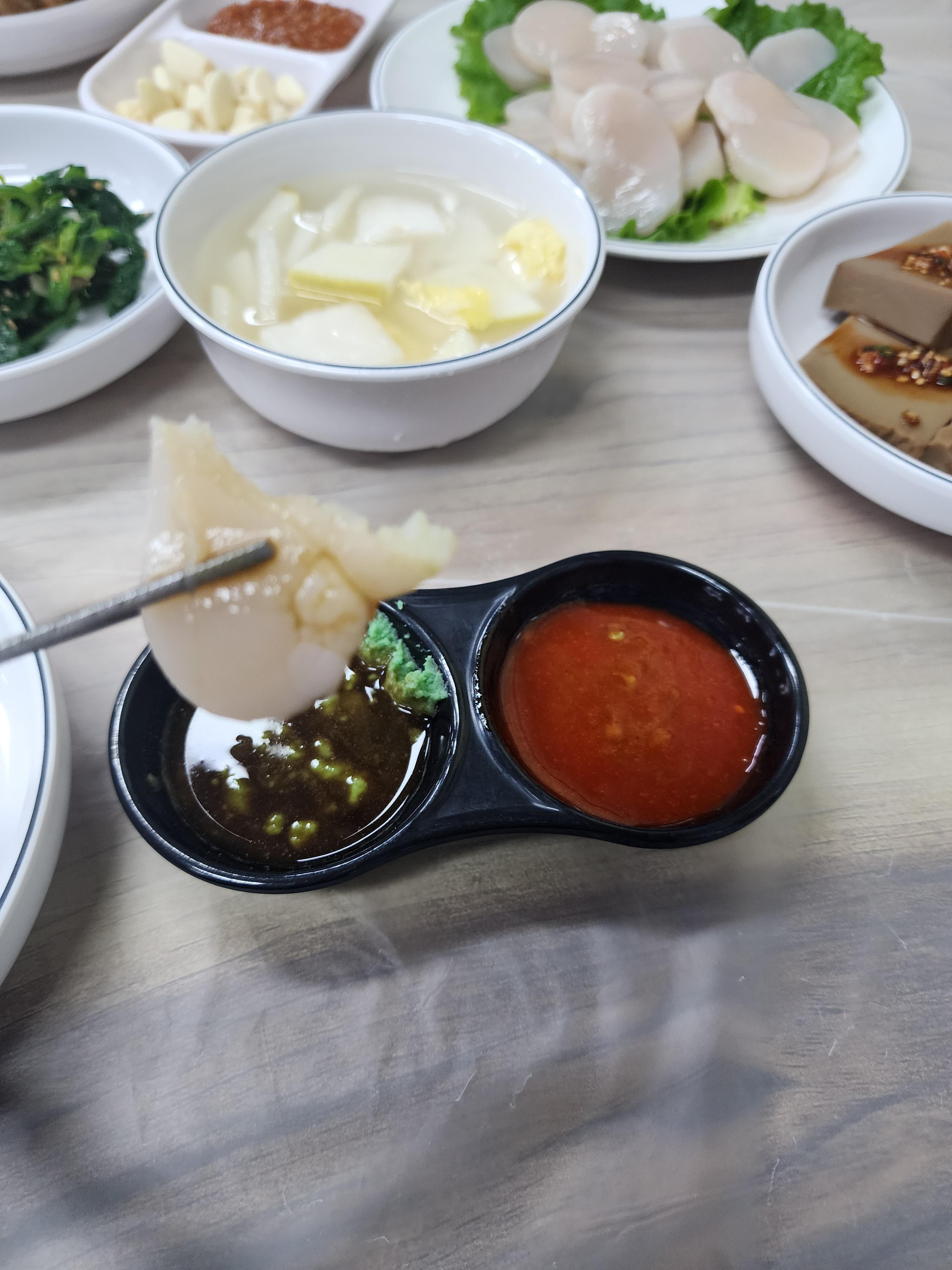 쫄깃하면서도 부드러운 식감, 입안에서 살살 녹는 단맛이 너무 매력적이었어요. 초장보다 그냥 간장에 톡 찍어먹는 게 제일 맛있어요.