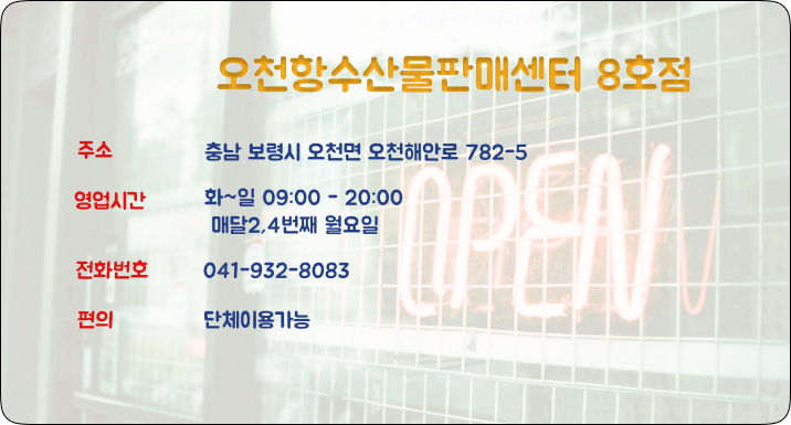 - 주소: 충남 보령시 오천면 오천해안로 782-5