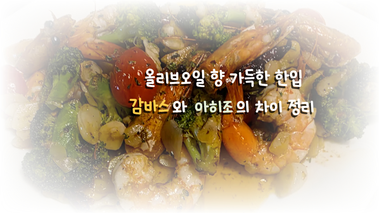 감바스 아히조 차이, 스페인 올리브오일 요리, 오징어 아히조, 새우 감바스 비교까지 한 번에 정리했어요!