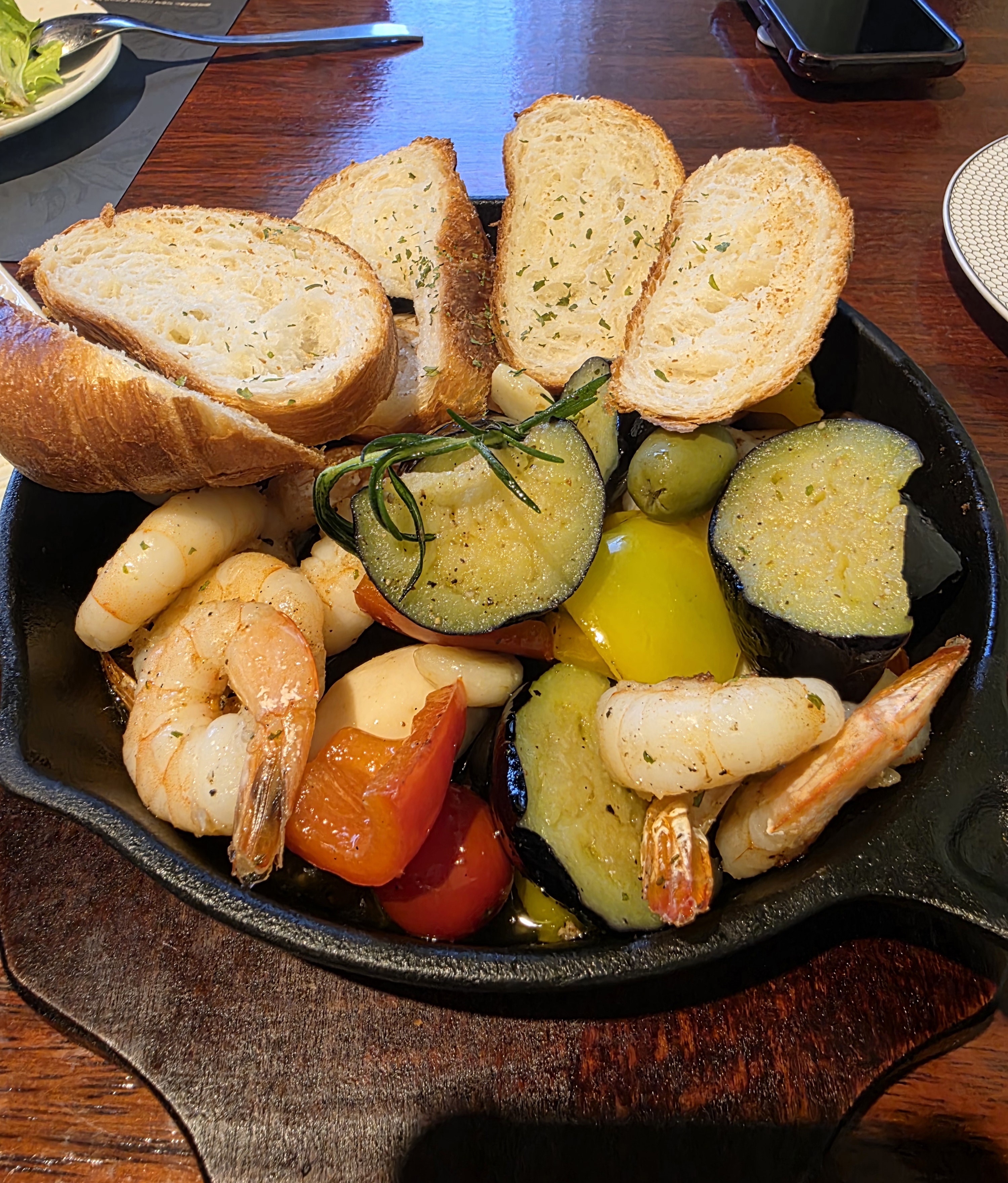 새우 외에도 가지, 파프리카, 마늘, 로즈마리 등이 들어간 버전이에요.