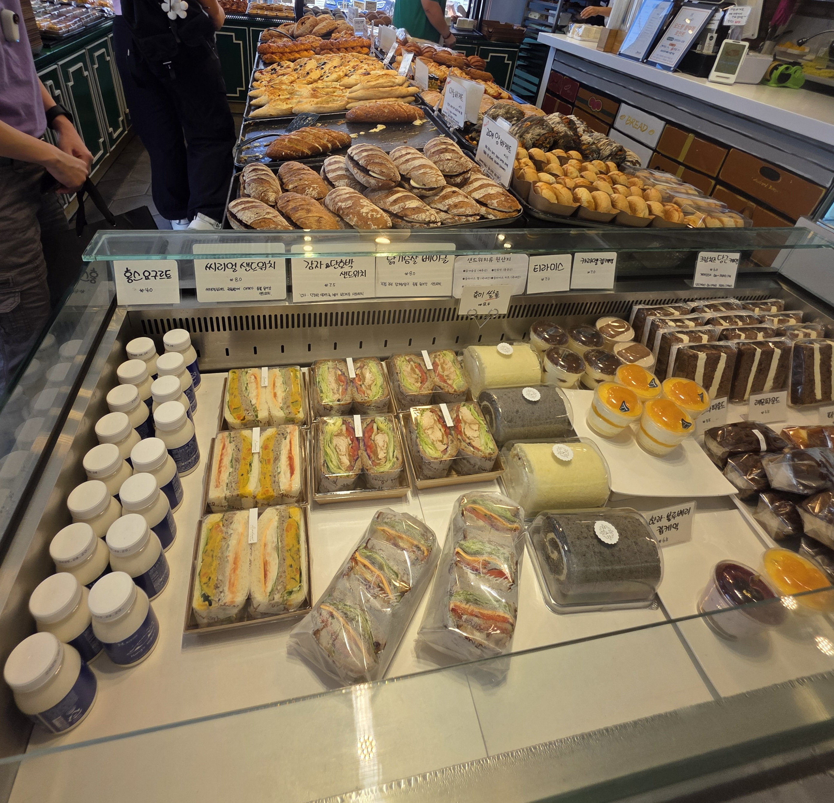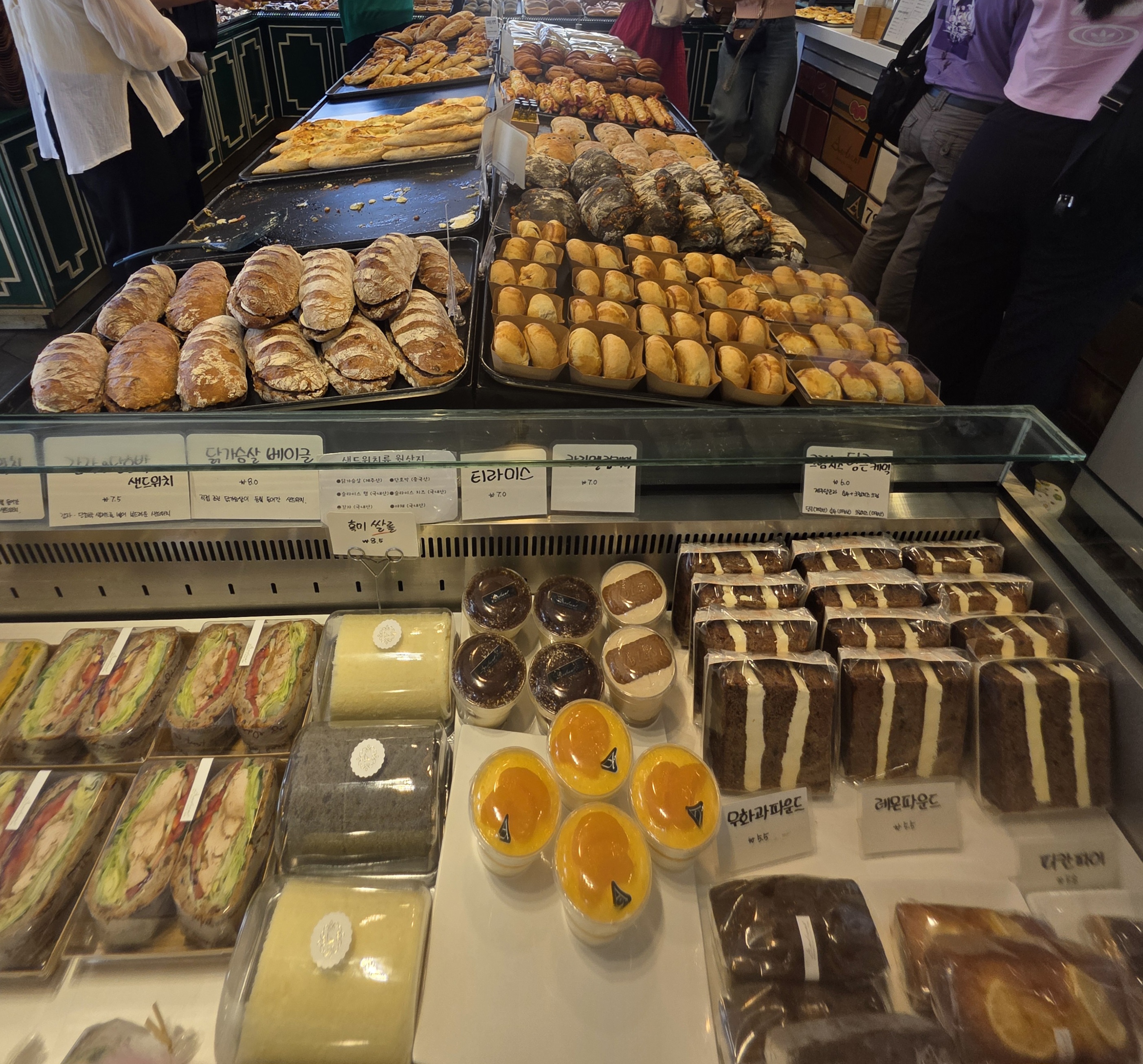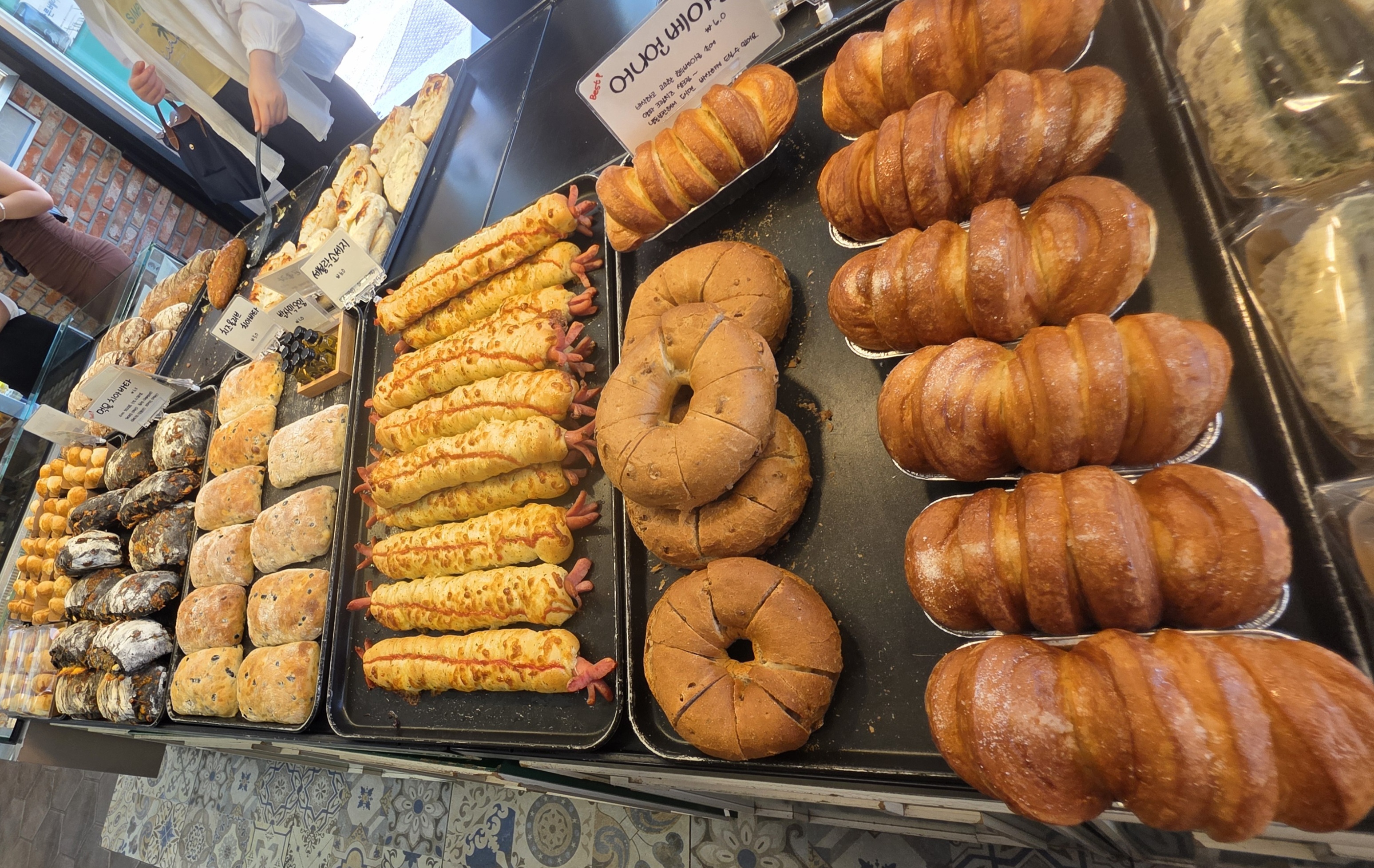 진열대에는 다양한 빵들이 가지런히 놓여 있었는데, 눈으로 먼저 배부를 정도예요.