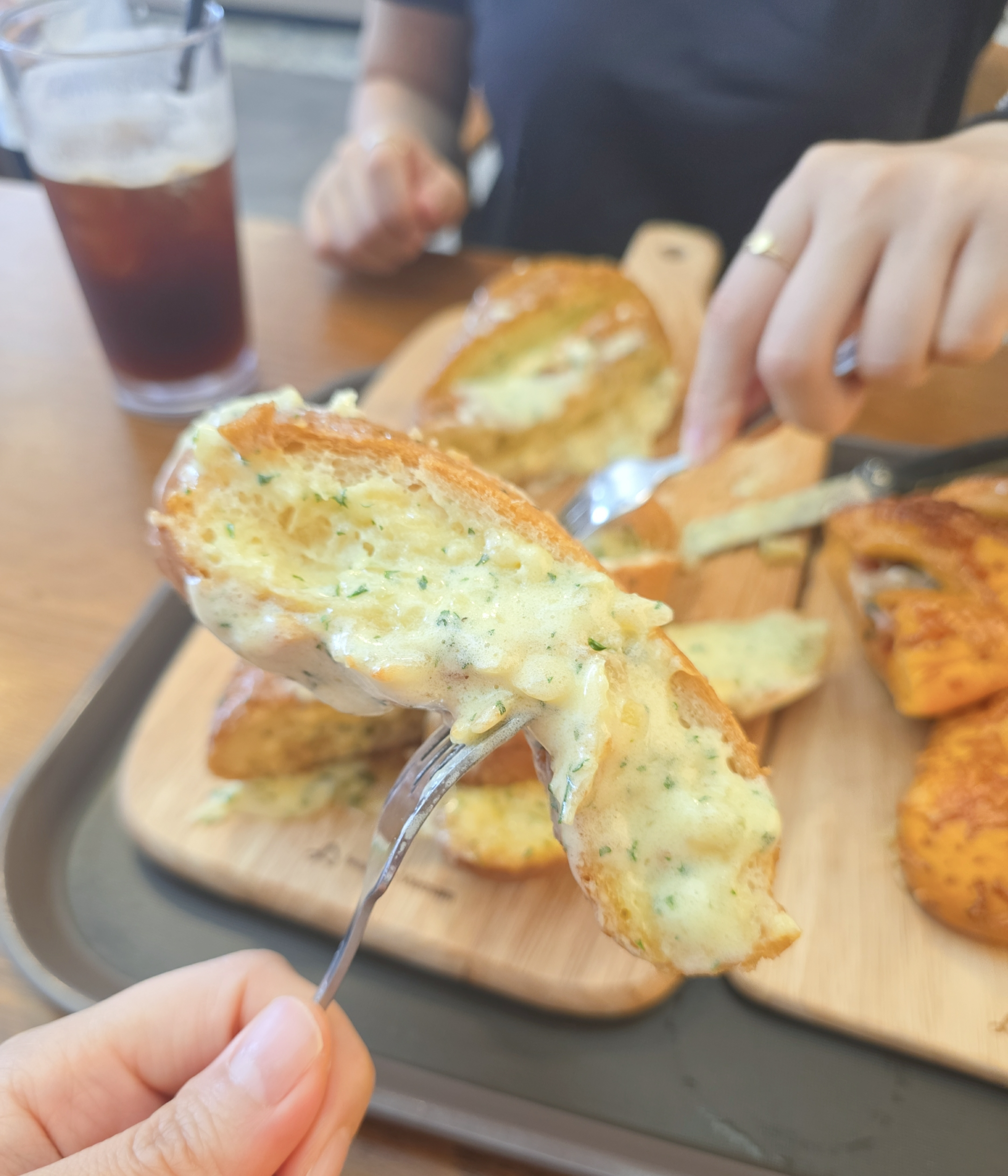 특히 마농바게트(7,300원) 는 이 집의 시그니처 메뉴로, 한입 베어 물면 바삭한 겉과 달큼짭짤한 마늘소스가 입안 가득 퍼집니다.