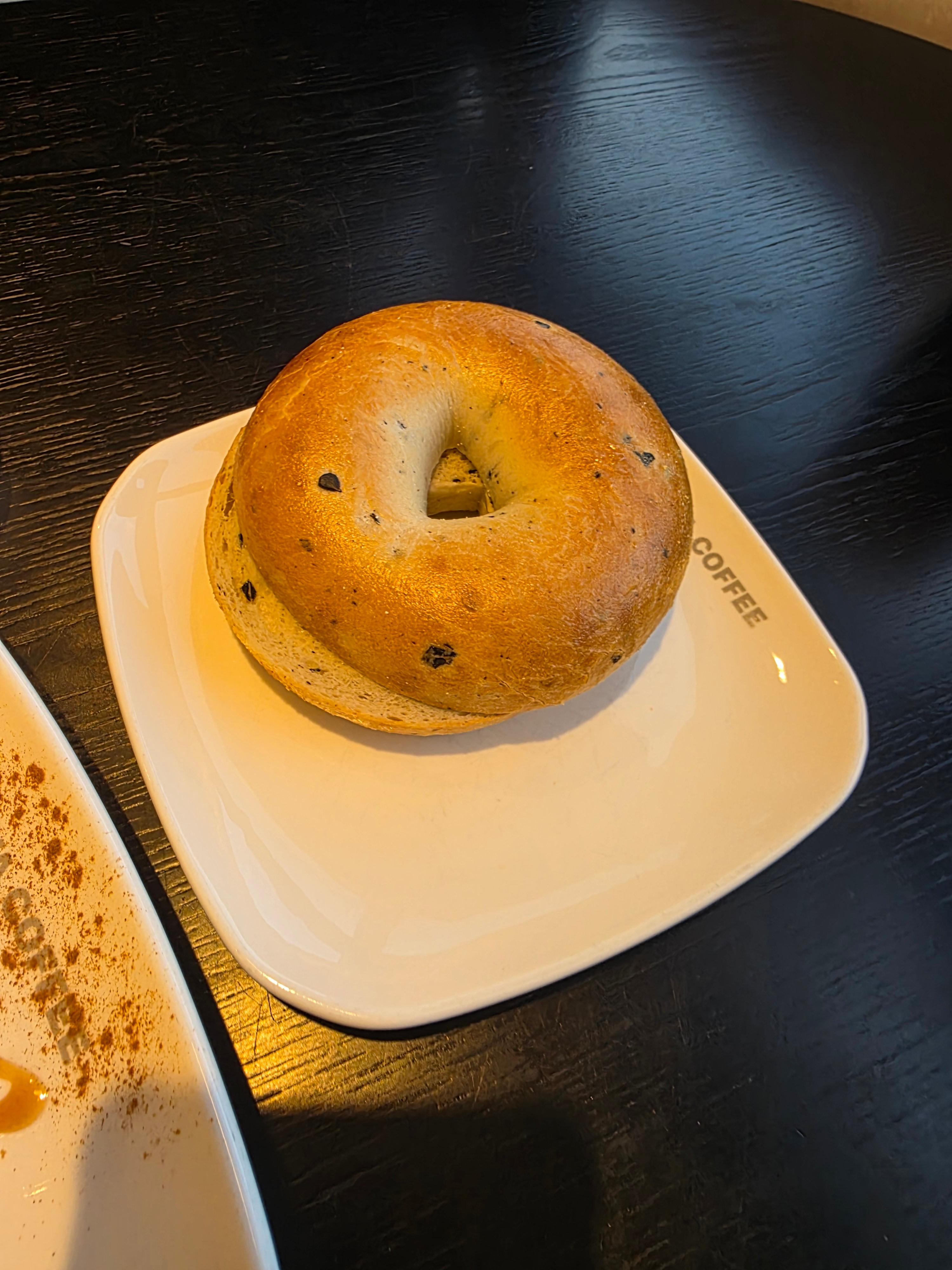 베이글은 블루베리 향이 은은하게 나고, 따끈하게 데워줘서 좋았어요.