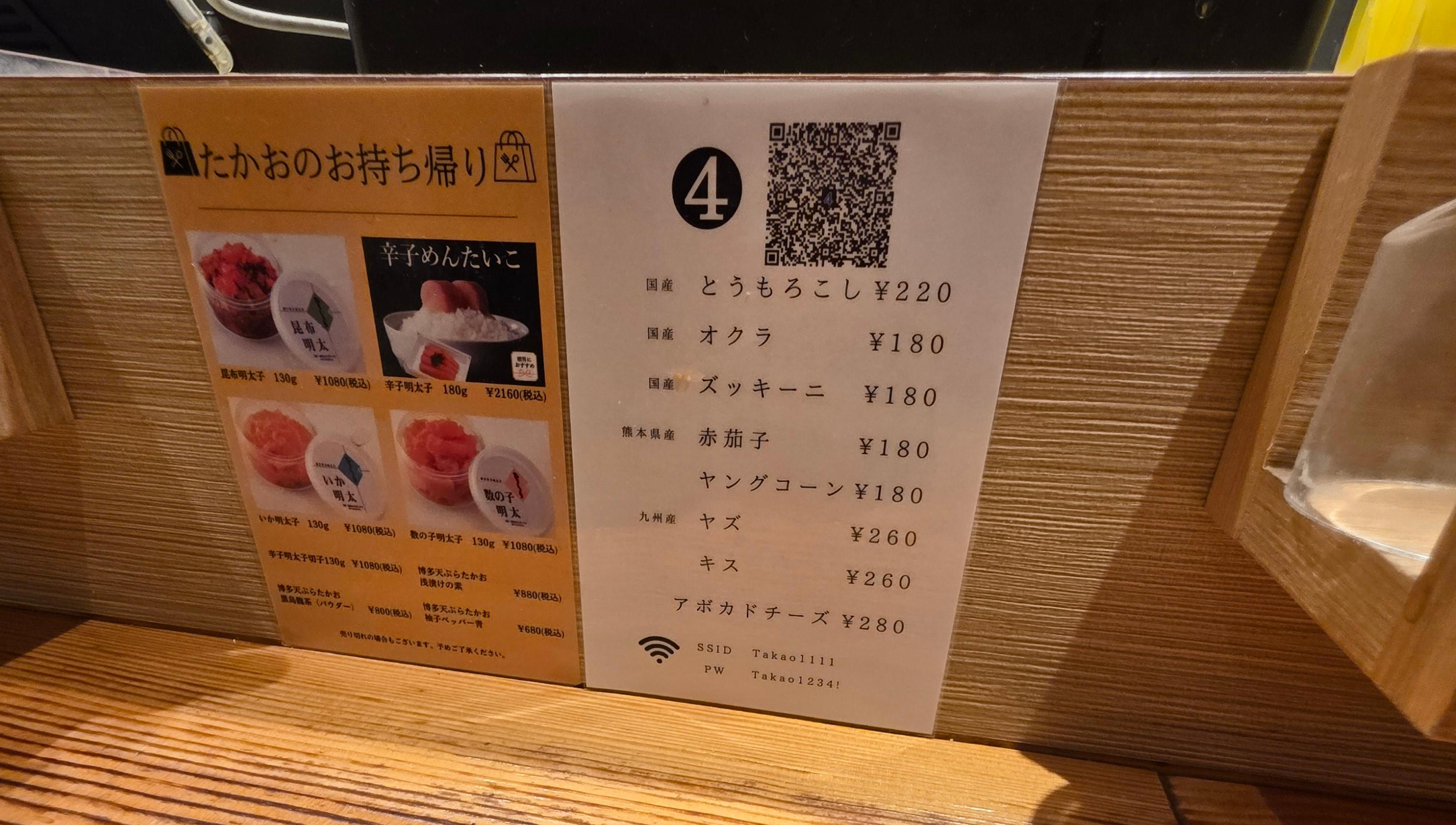 타카오 텐푸라 메뉴판 & 주문한 메뉴