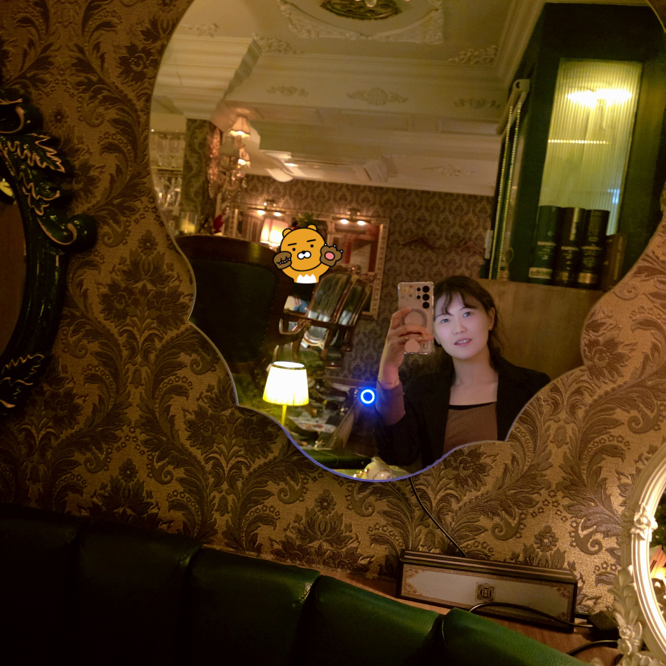 제가 앉았던 자리 앞에는 로코코 스타일의 화려한 거울이 있었는데, 거기 비친 내 모습이 괜히 더 분위기 있어 보이더라구요 ㅎㅎ