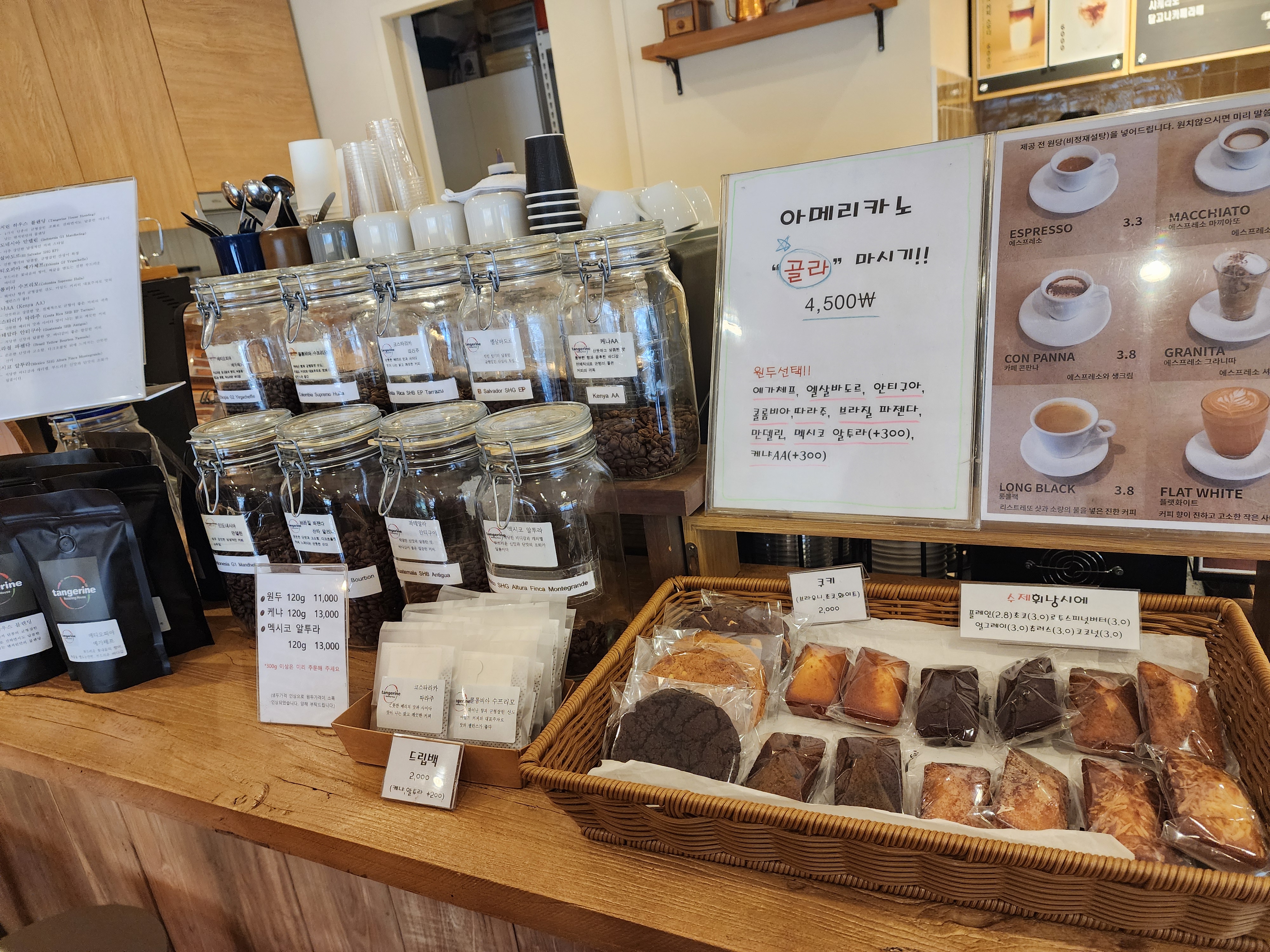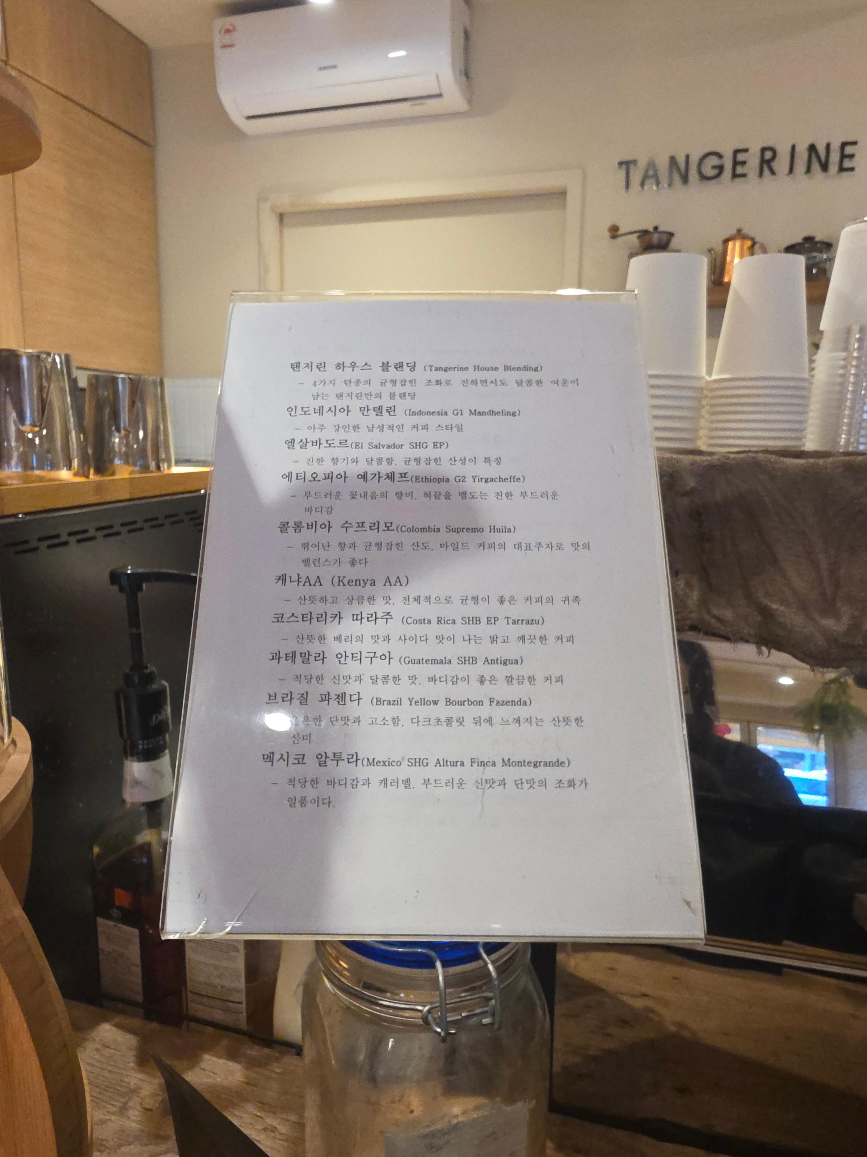 그래서인지 탠저린은 갈 때마다 새로운 원두를 시도해보고 싶어지는 곳이에요.
