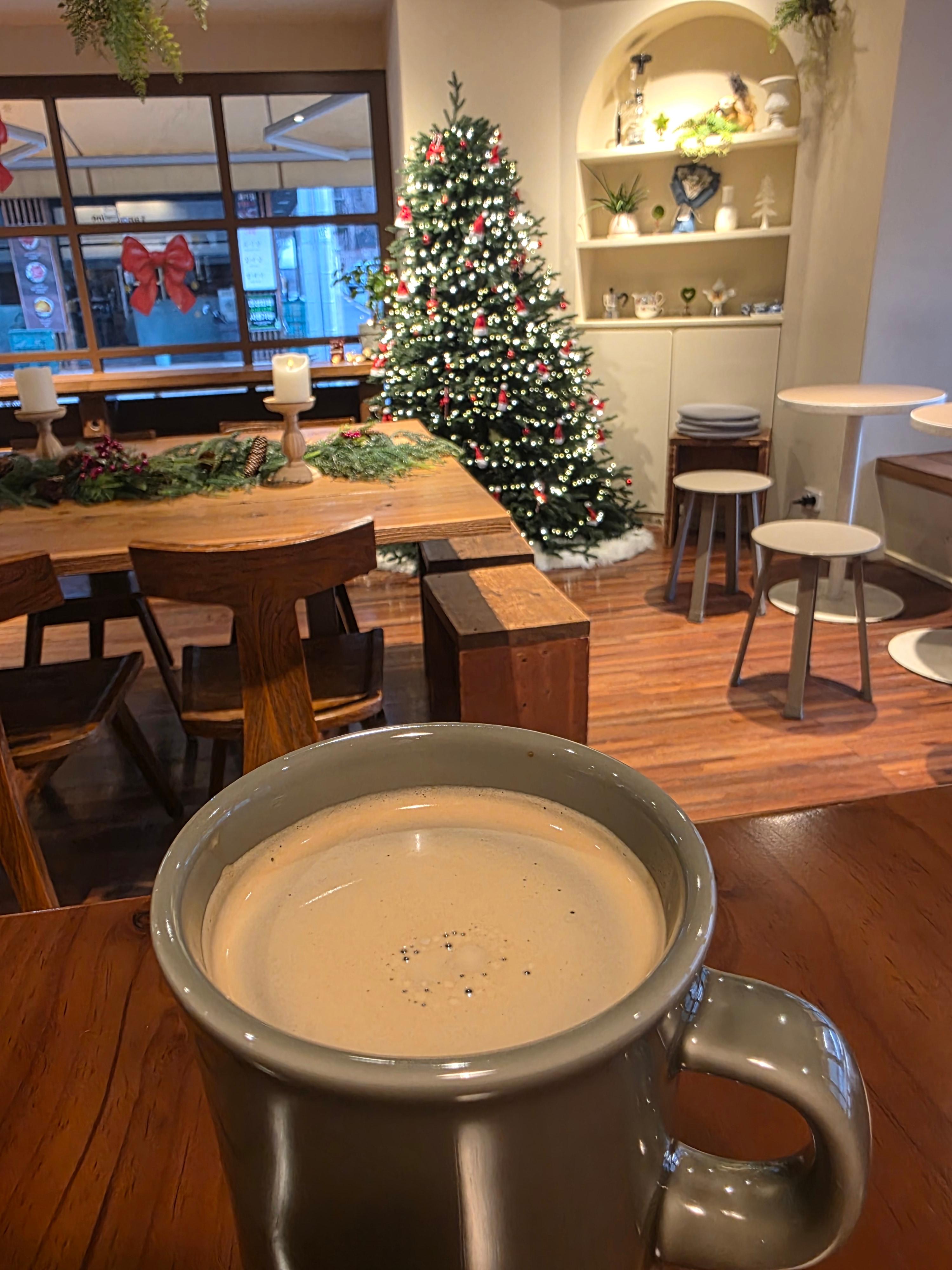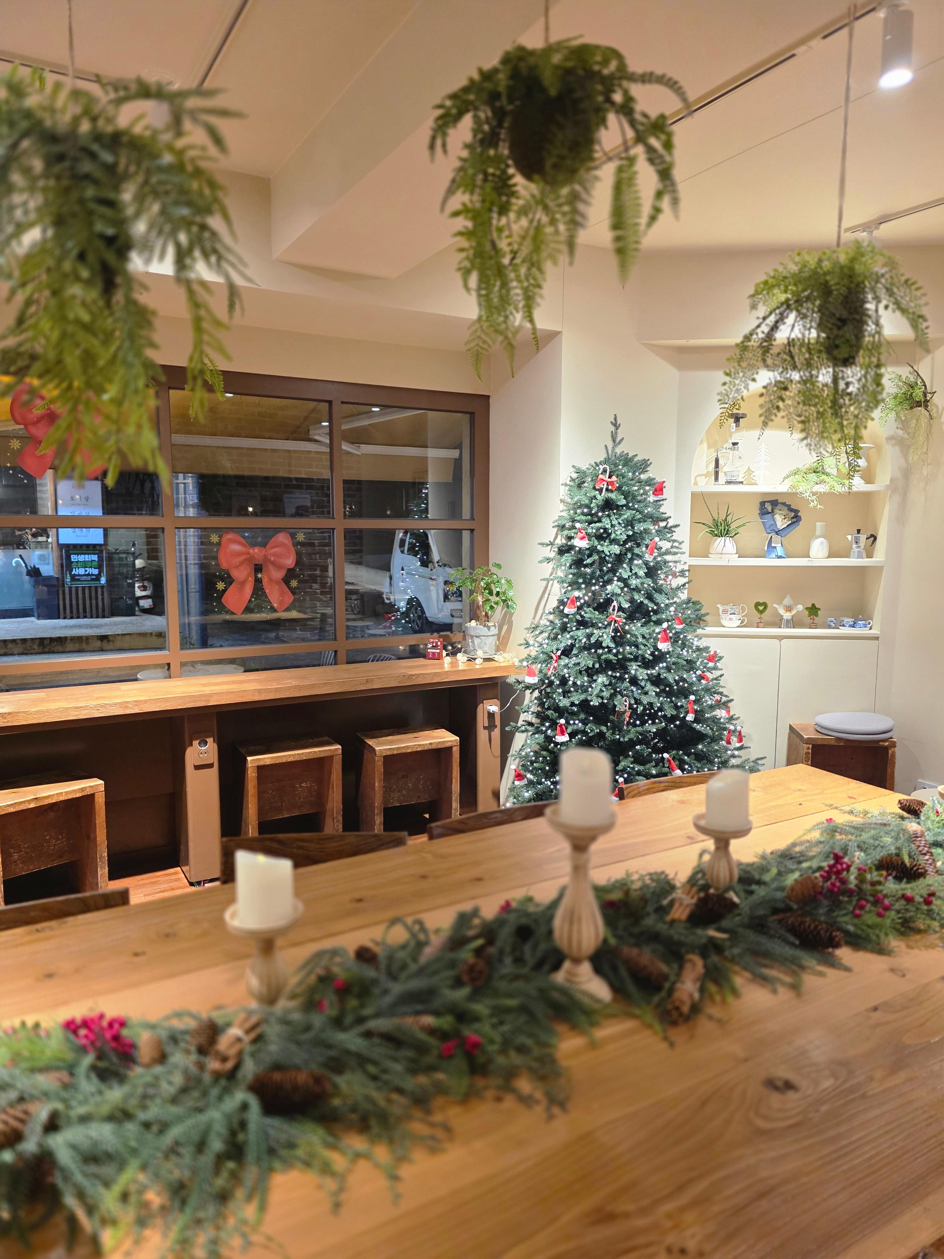 입구부터 반짝이는 트리, 리스, 테이블 데코까지… “아, 진짜 겨울이구나” 싶은 느낌이 확 들었어요.