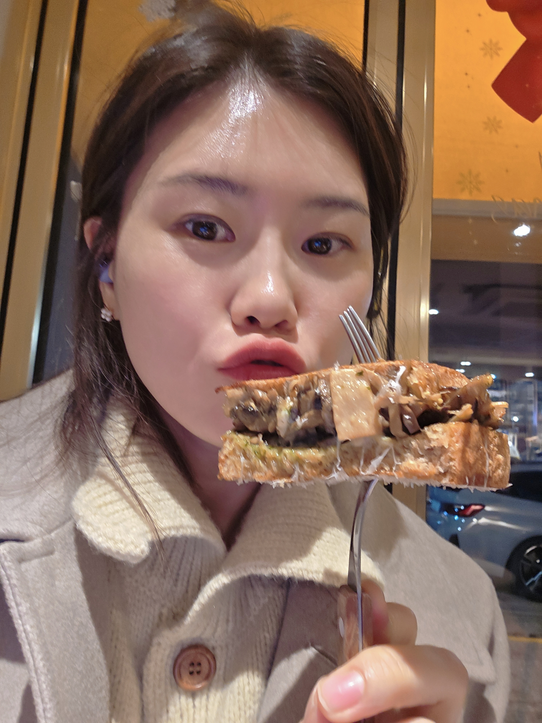 첫 입 먹으면 버섯 향 + 치즈의 고소함 + 따뜻한 빵의 촉촉함 이 세 가지가 확— 올라와요.