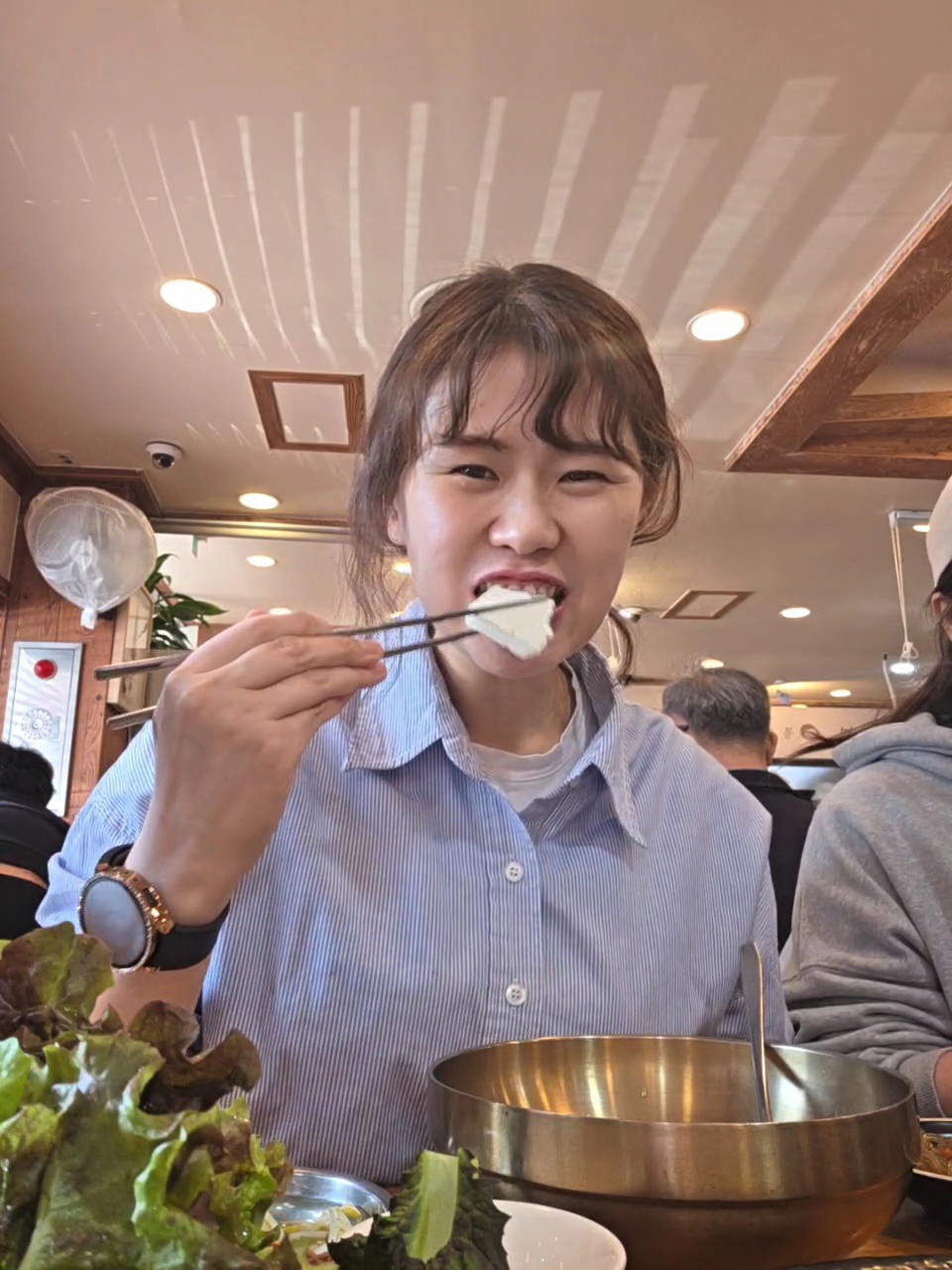 수육 먹고 난 다음에 이 순두부 한 숟가락 딱 먹으면 다시 또 먹을 힘이 생겨요.