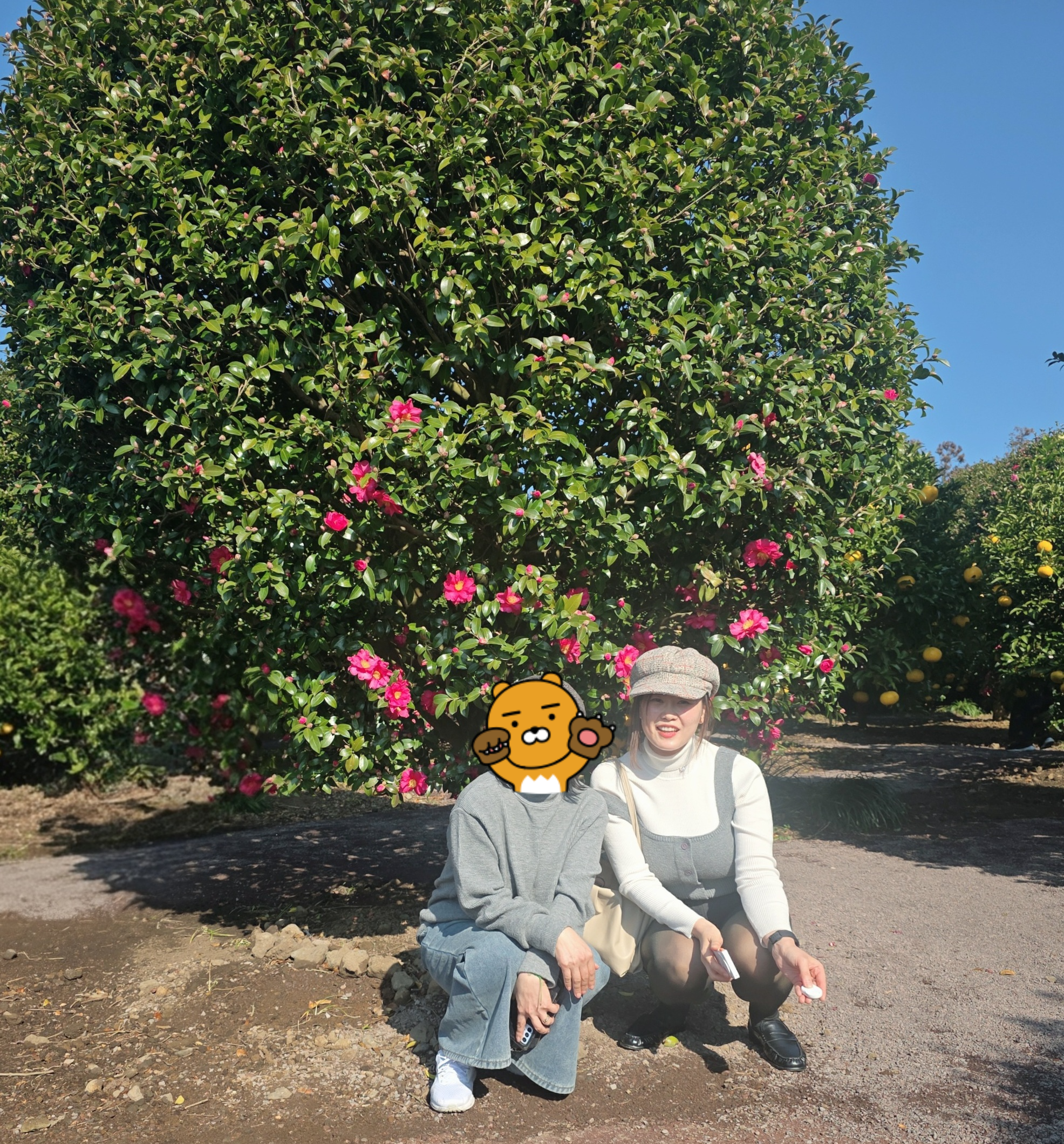 특히 저는 동백나무 옆에서 인물샷 찍는 걸 추천해요. 꽃이 만개가 아니어도, 나무 자체가 커서 배경이 꽉 차거든요. 그리고 햇빛이 좋은 날 가면 얼굴 톤도 예쁘게 뜨는 느낌! (이거 중요함)