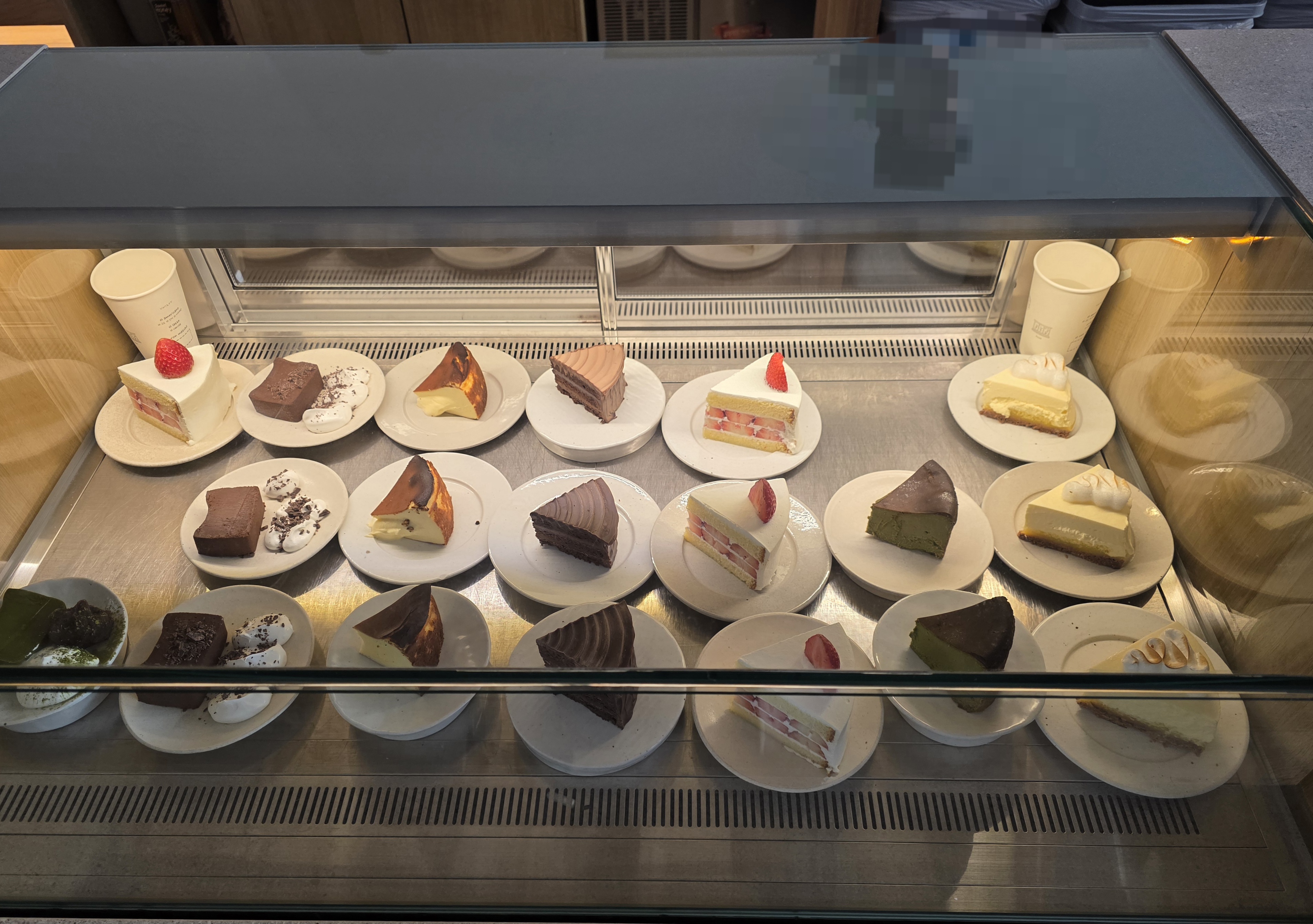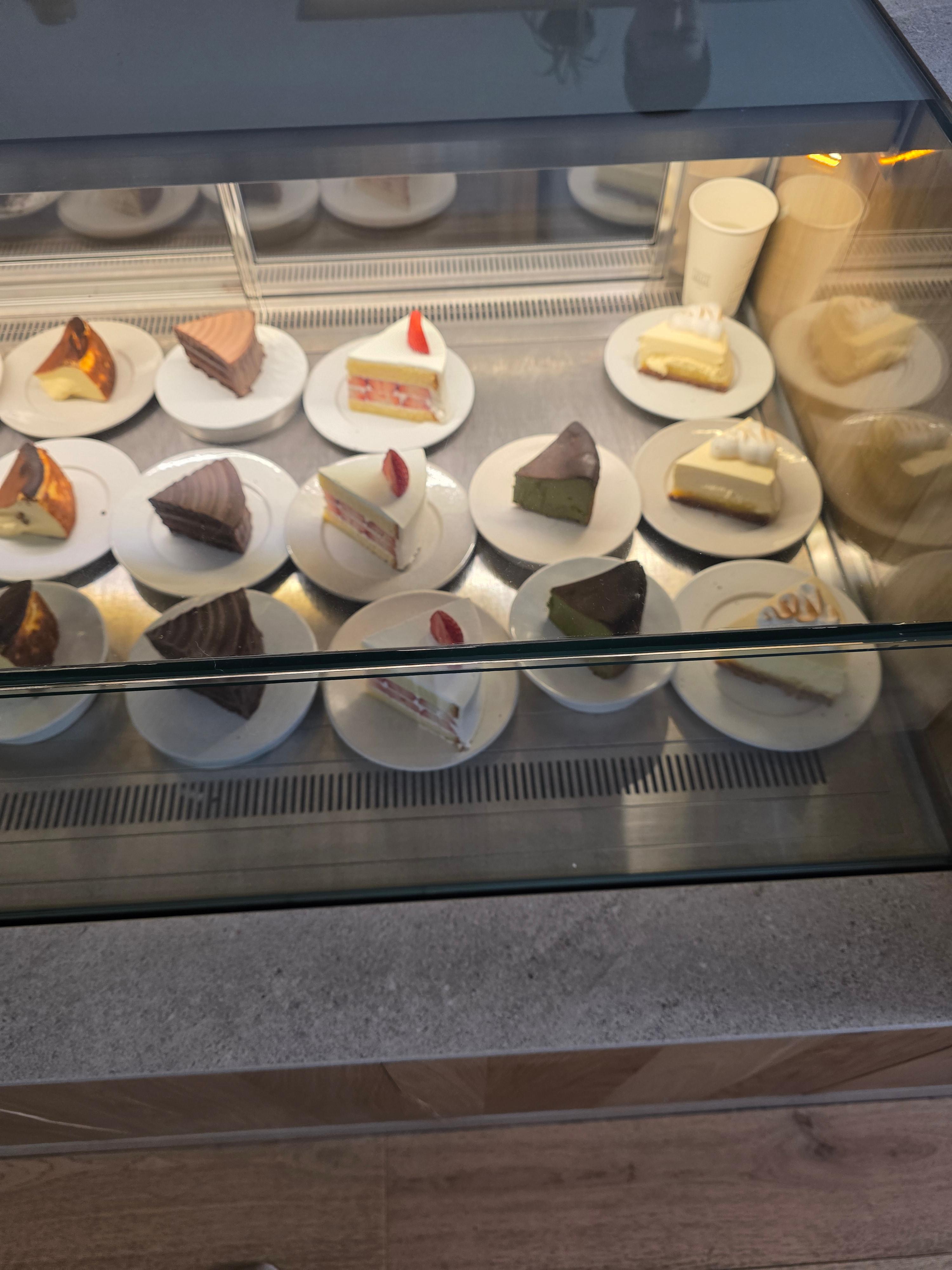 쇼케이스에 케이크들이 너무 예쁘게 있어서 살짝 흔들렸지만,