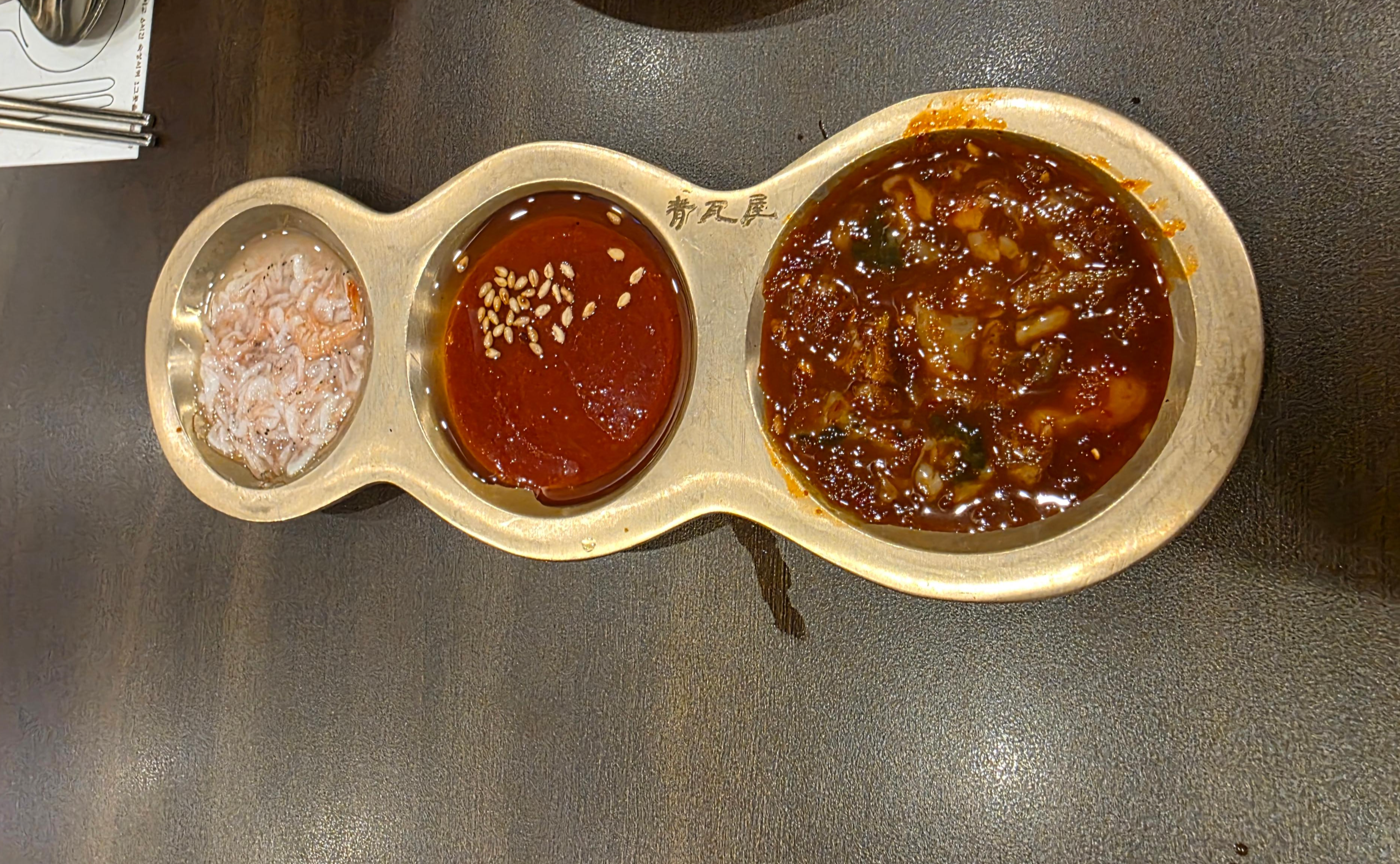 무생채, 깍두기 다 맛있고, 특히 어리굴젓 / 초고추장 / 새우젓 이 조합이 진짜 별미예요.