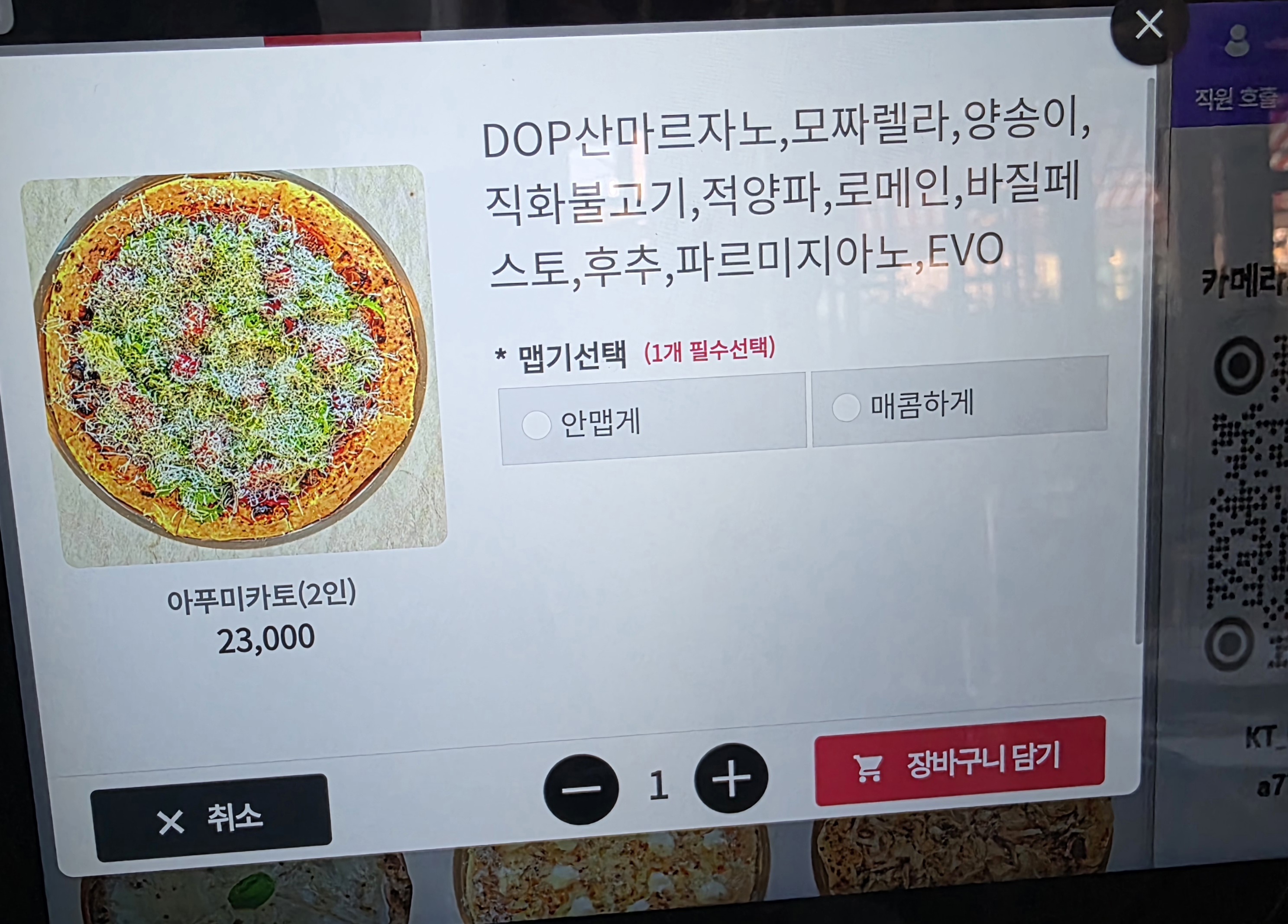 - 아푸미카토 피자 23,000원 (매콤하게)