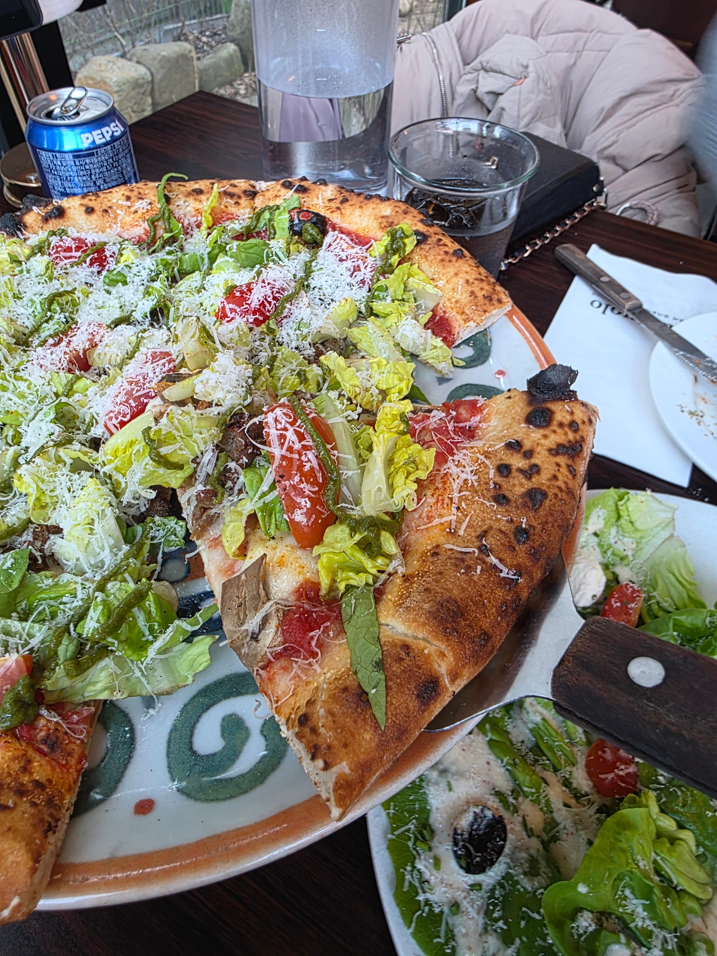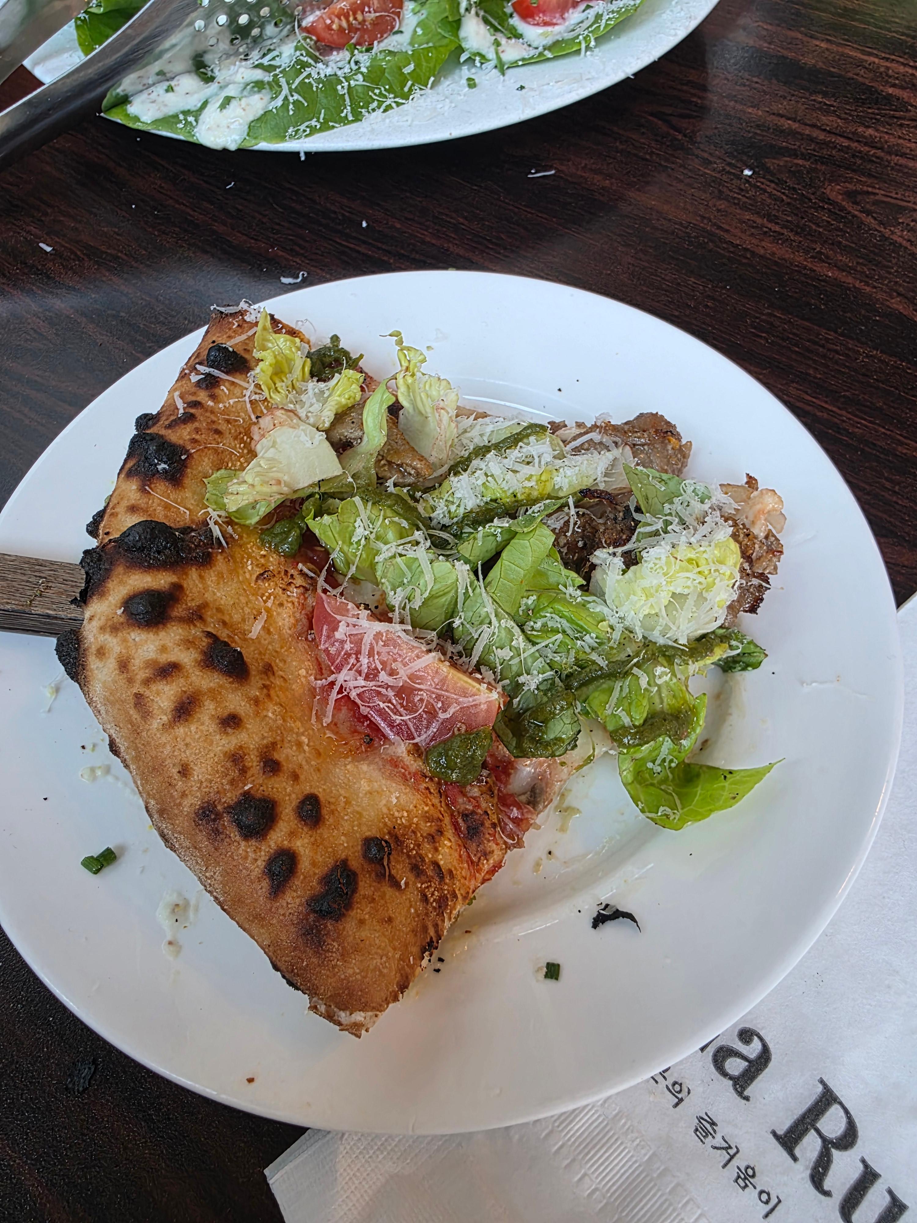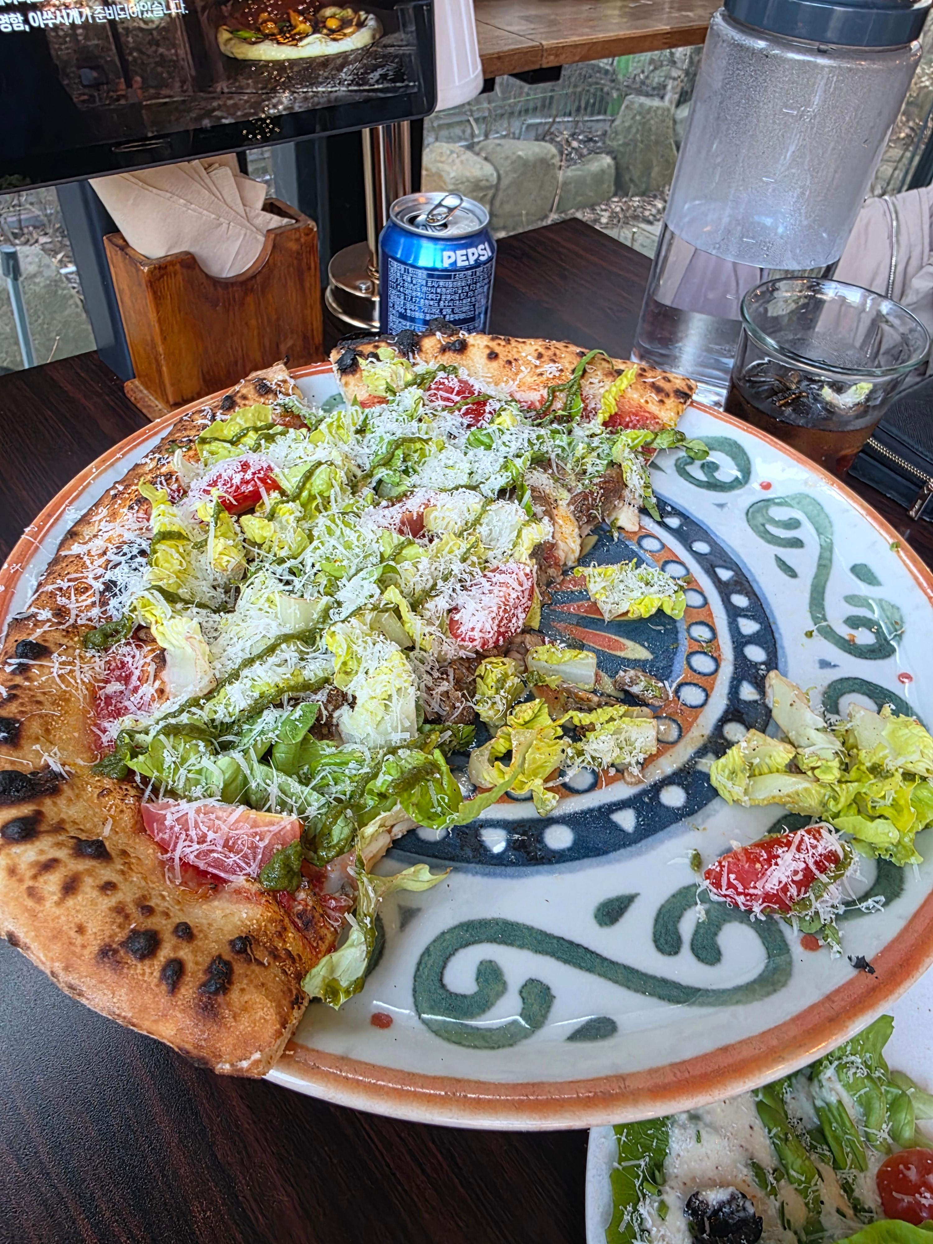 상큼하면서도 깊은 맛이라 샐러드인데 계속 손이 가요. 플레이팅도 예뻐서 사진도 잘 나옵니다. 피자 나오기 전에 거의 다 먹어버림ㅋㅋ