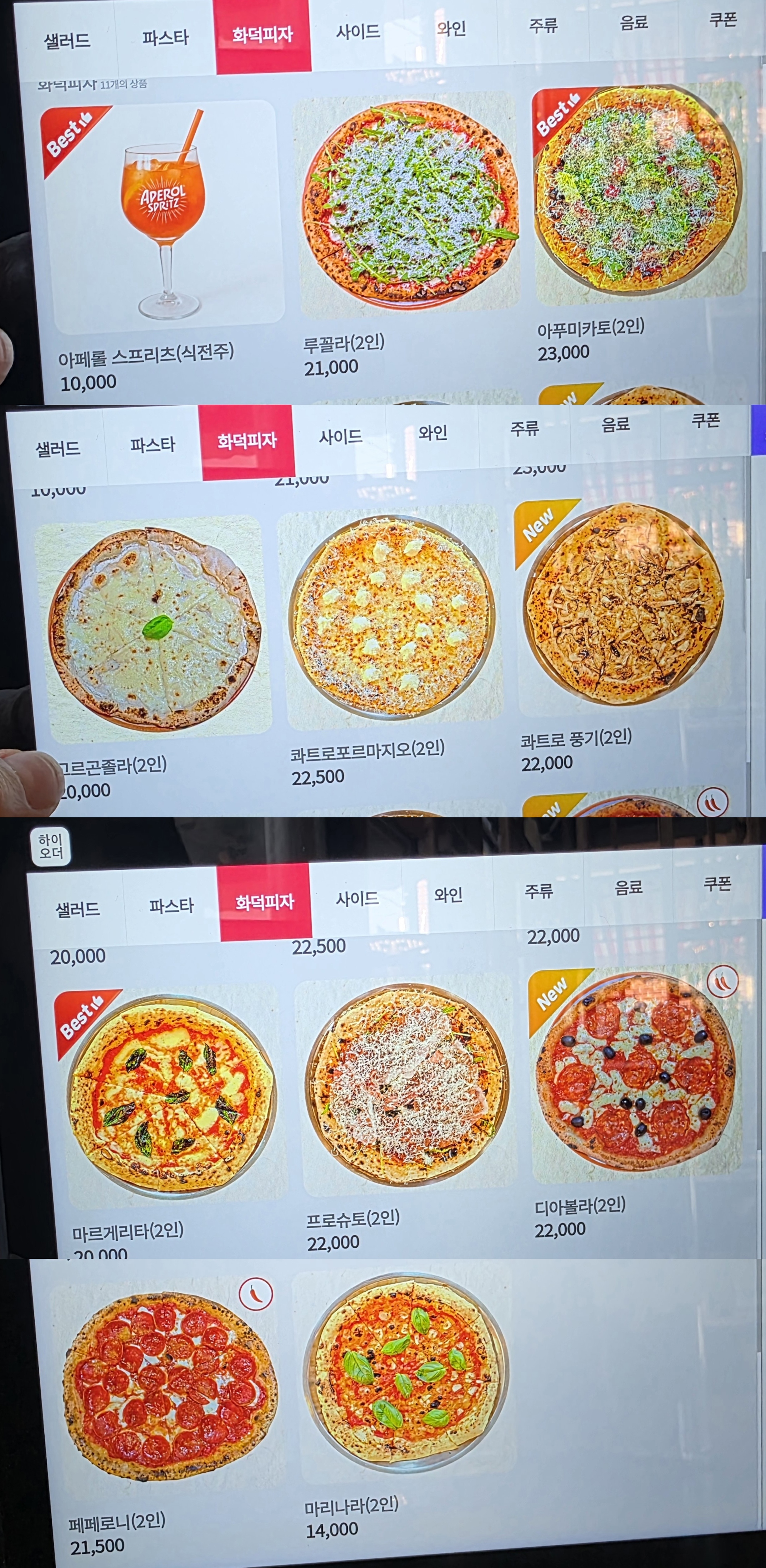 화덕피자 종류가 정말 다양해서 고르기 힘들 정도예요.