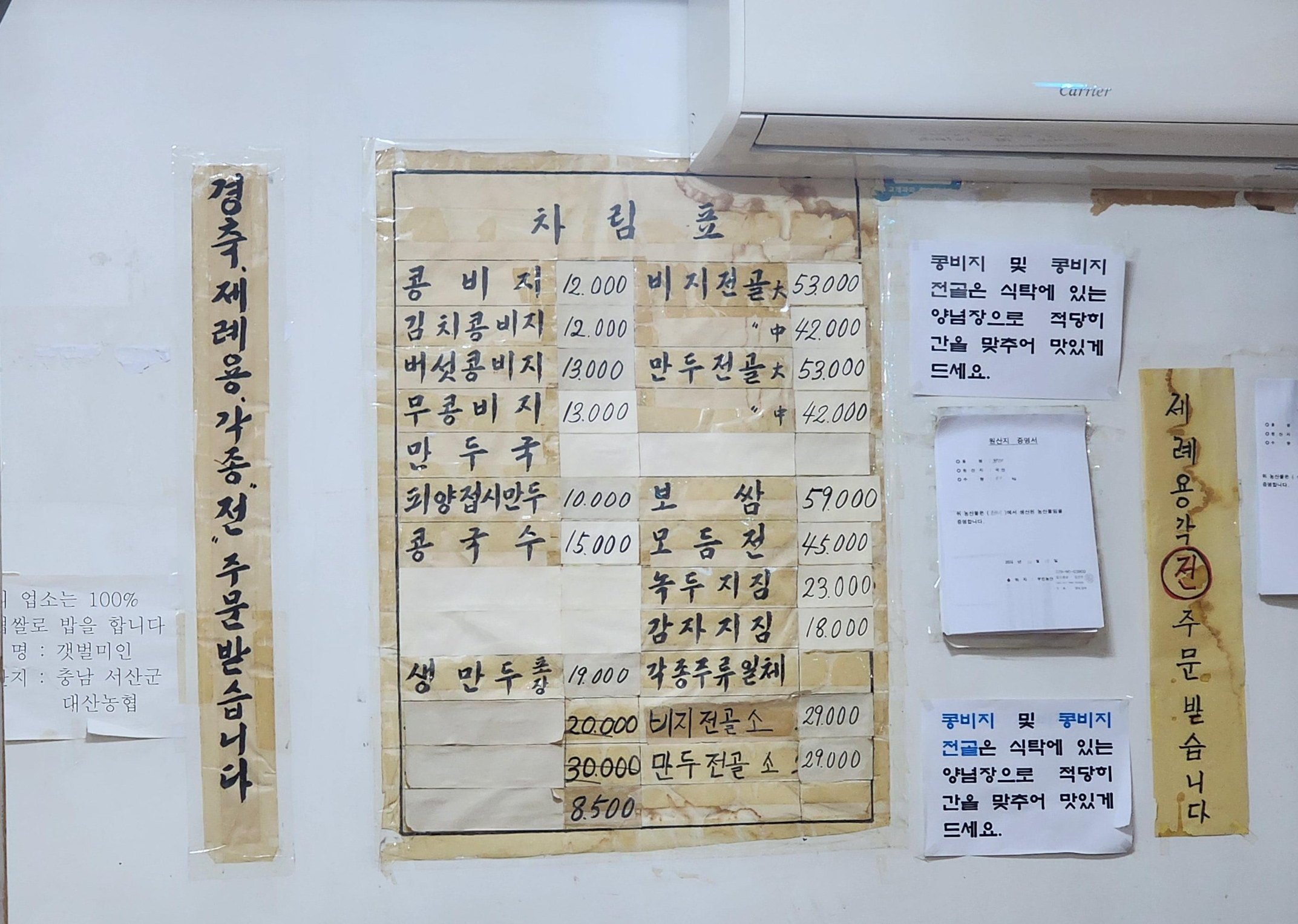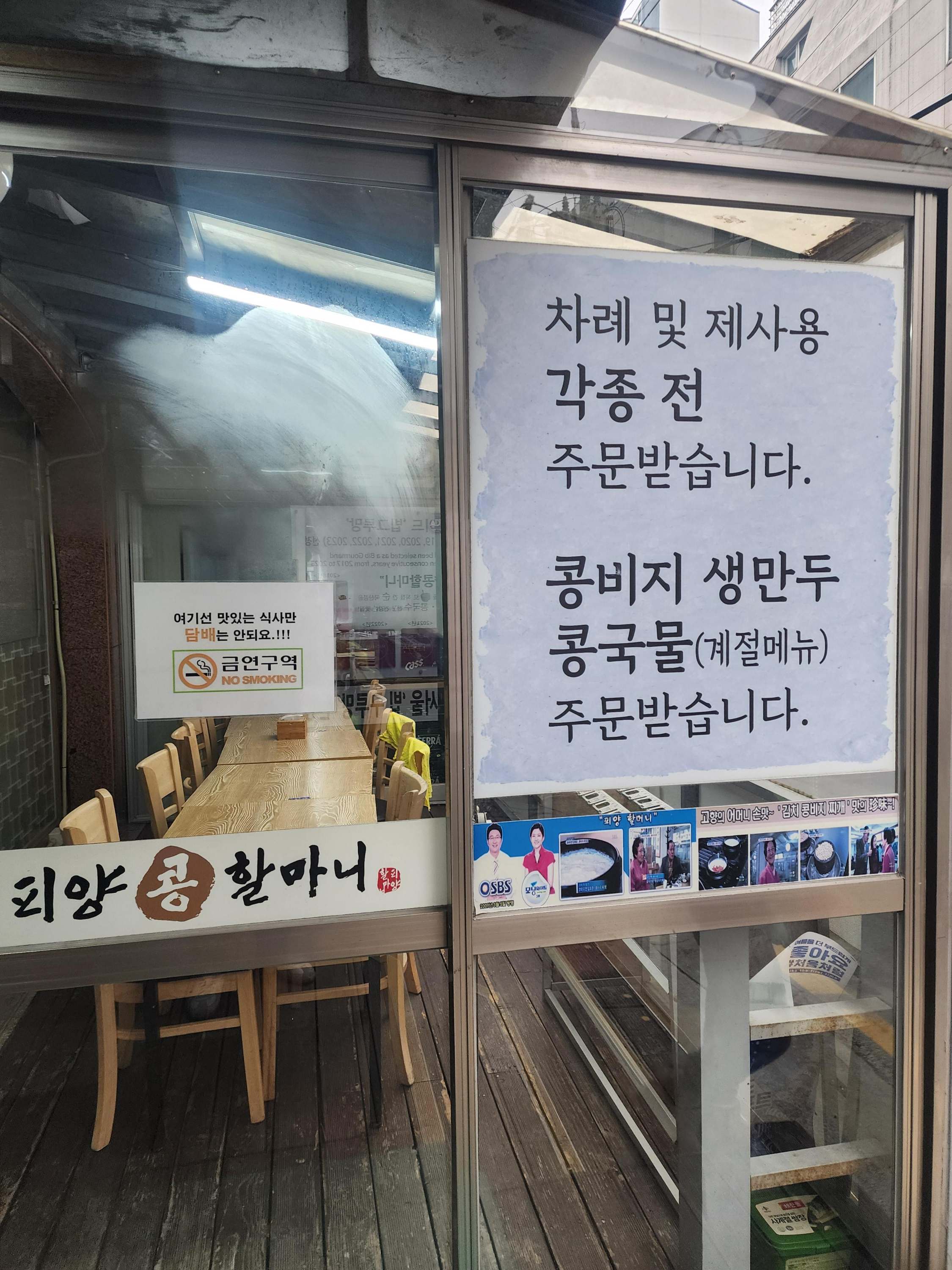 피양콩할마니 메뉴판
