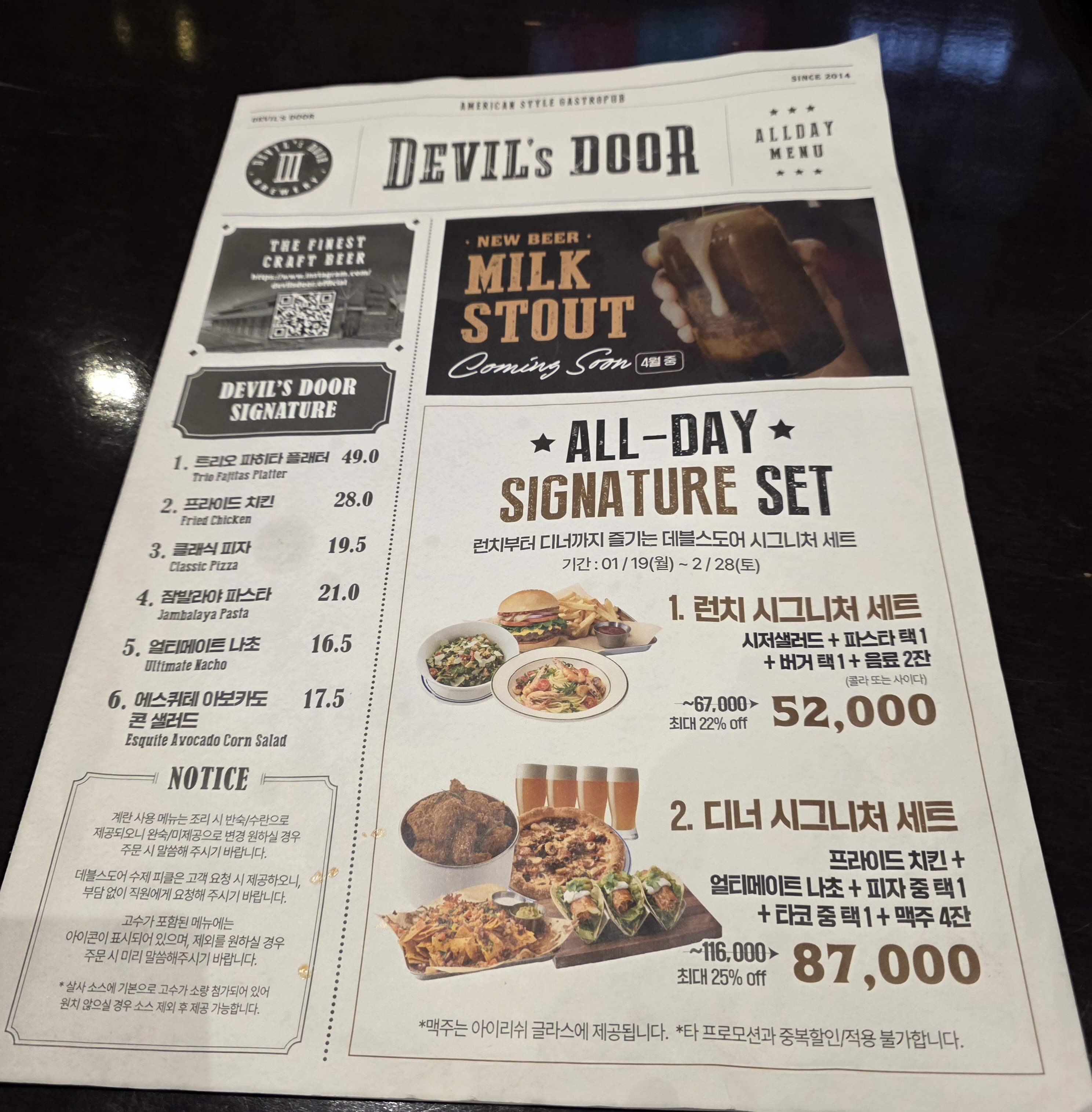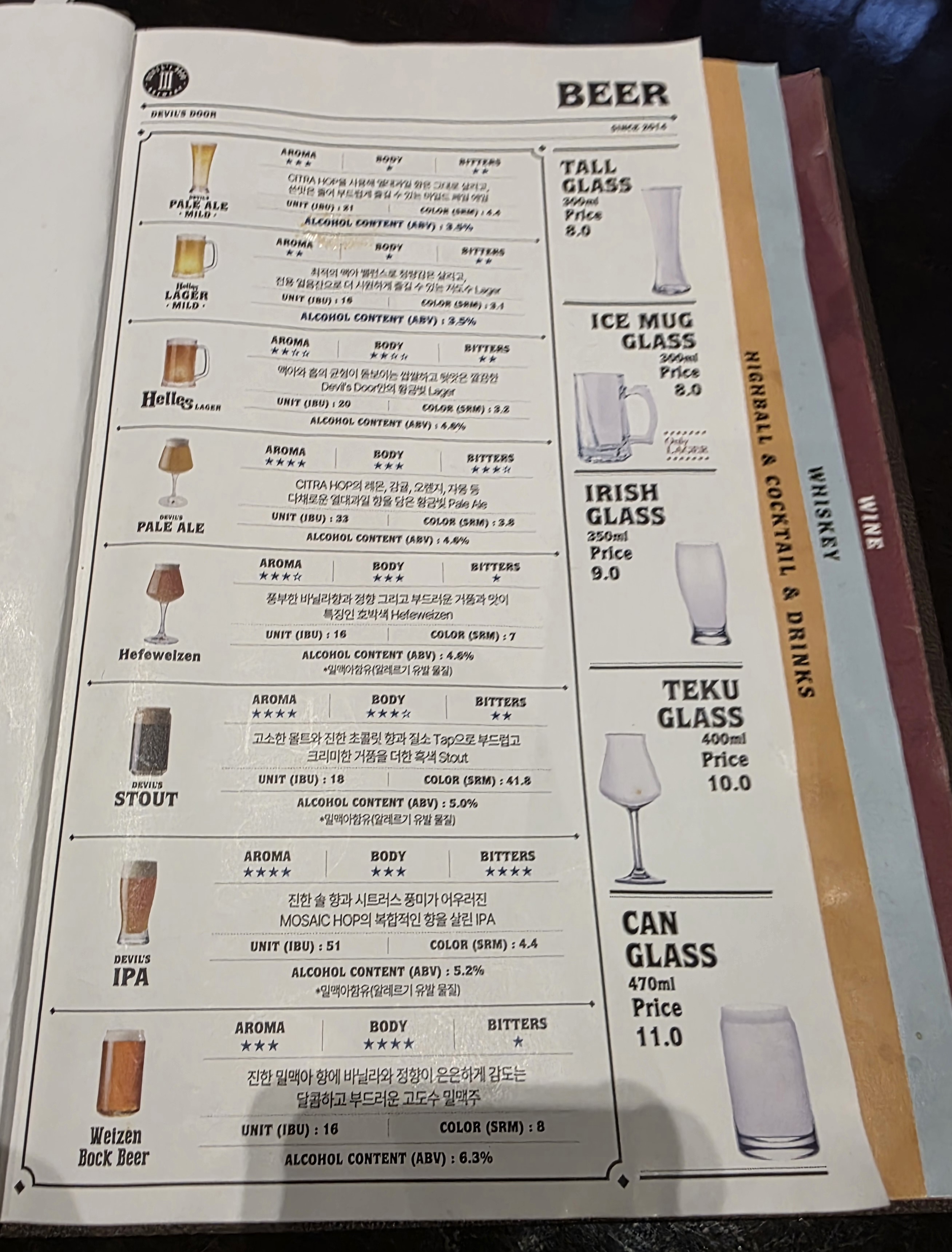 특히 데블스도어는 직접 양조한 맥주 종류가 다양해서, 무제한으로 즐기기 좋은 구조라는 느낌이었습니다.