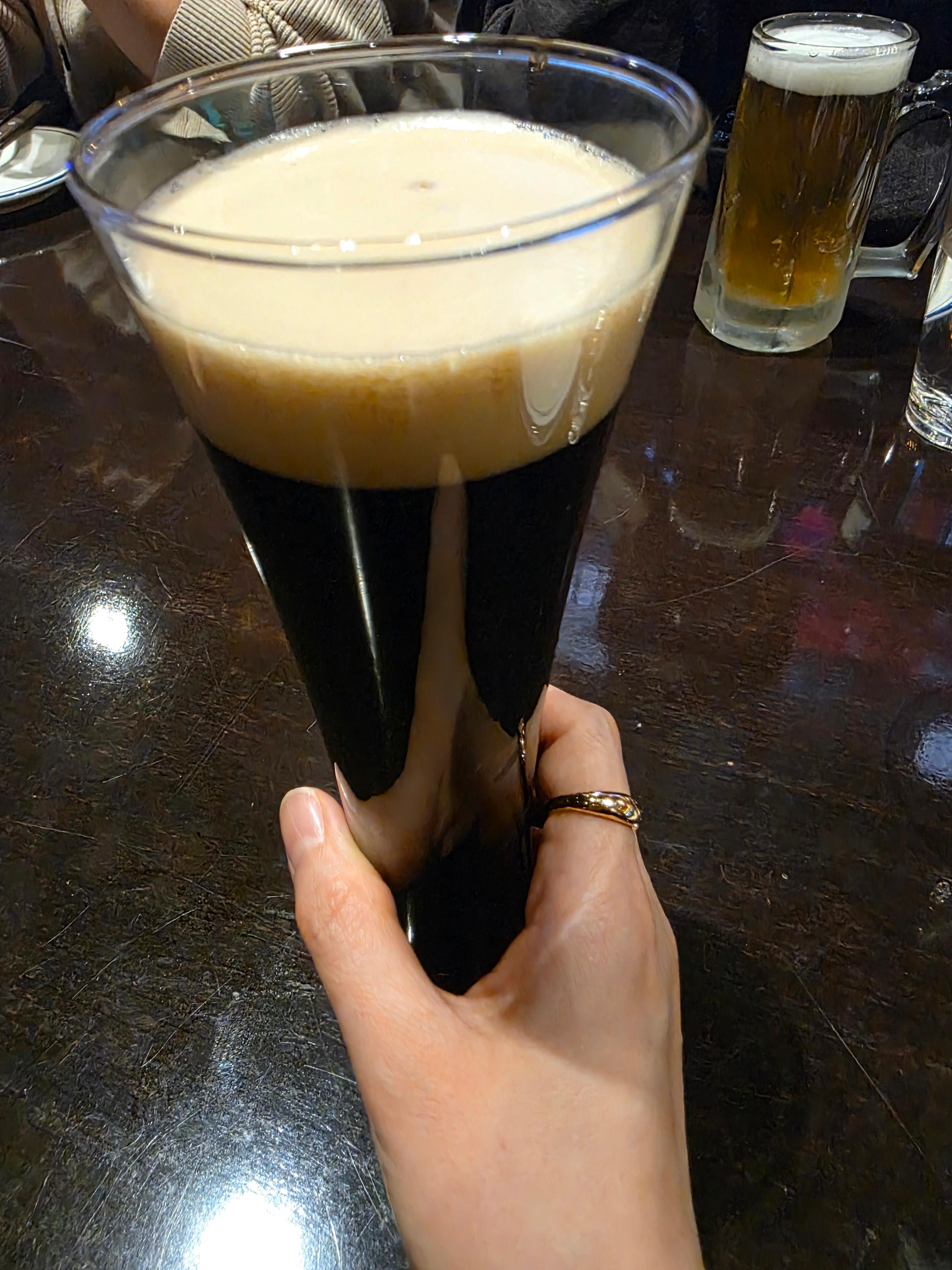 데블 스탁은 고소한 몰트 향과 진한 초콜릿 향이 느껴지는 흑맥주인데, 질소 탭으로 따라줘서 거품이 정말 부드럽고 크리미했어요. 흑맥주 좋아하시는 분들 취향 저격입니다. 이거 제 원픽입니다