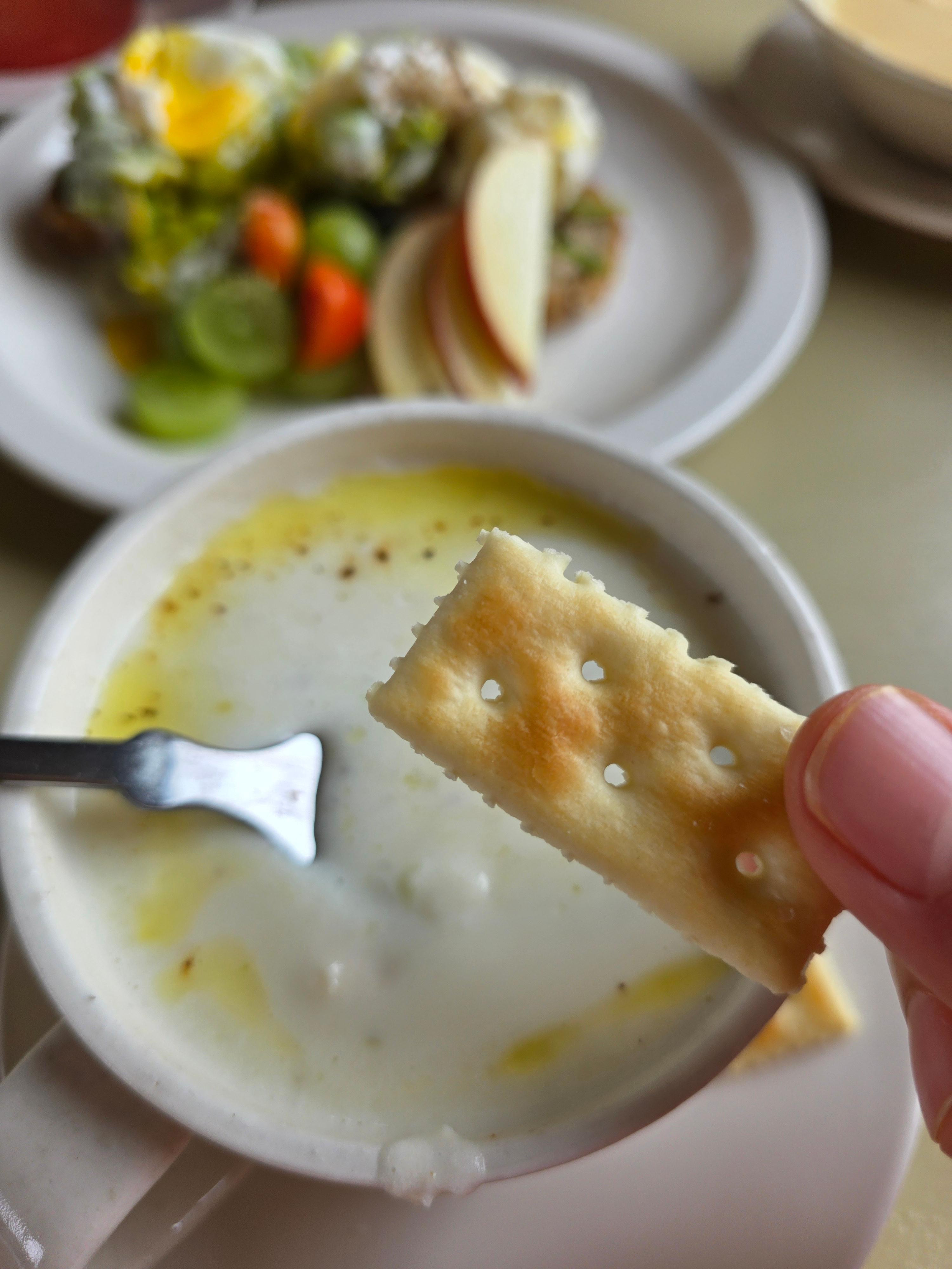 텁텁함 없이 크리미하면서도 깔끔했고, 같이 나온 크래커를 찍어 먹으니 식감까지 완벽했어요.