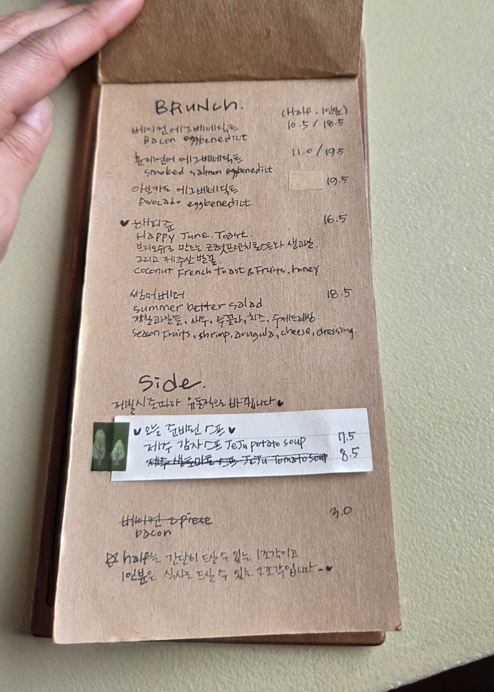 메뉴판 역시 감성적이고 아기자기하게 구성되어 있었습니다.