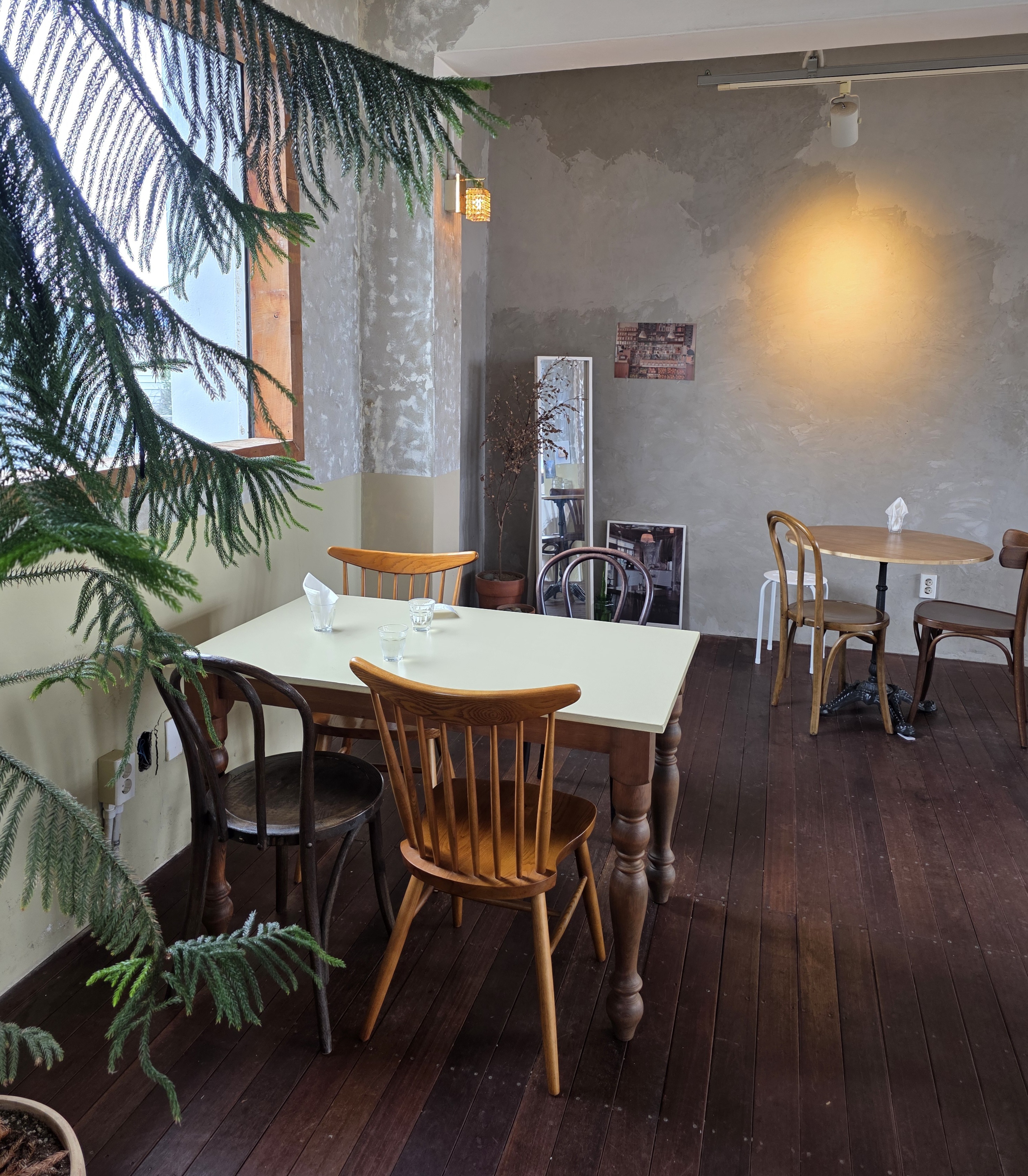 내부는 빈티지한 가구와 따뜻한 조명, 나무 바닥, 그리고 자연광이 부드럽게 들어오는 창가 자리까지 모든 것이 완벽하게 어우러져 있었습니다.