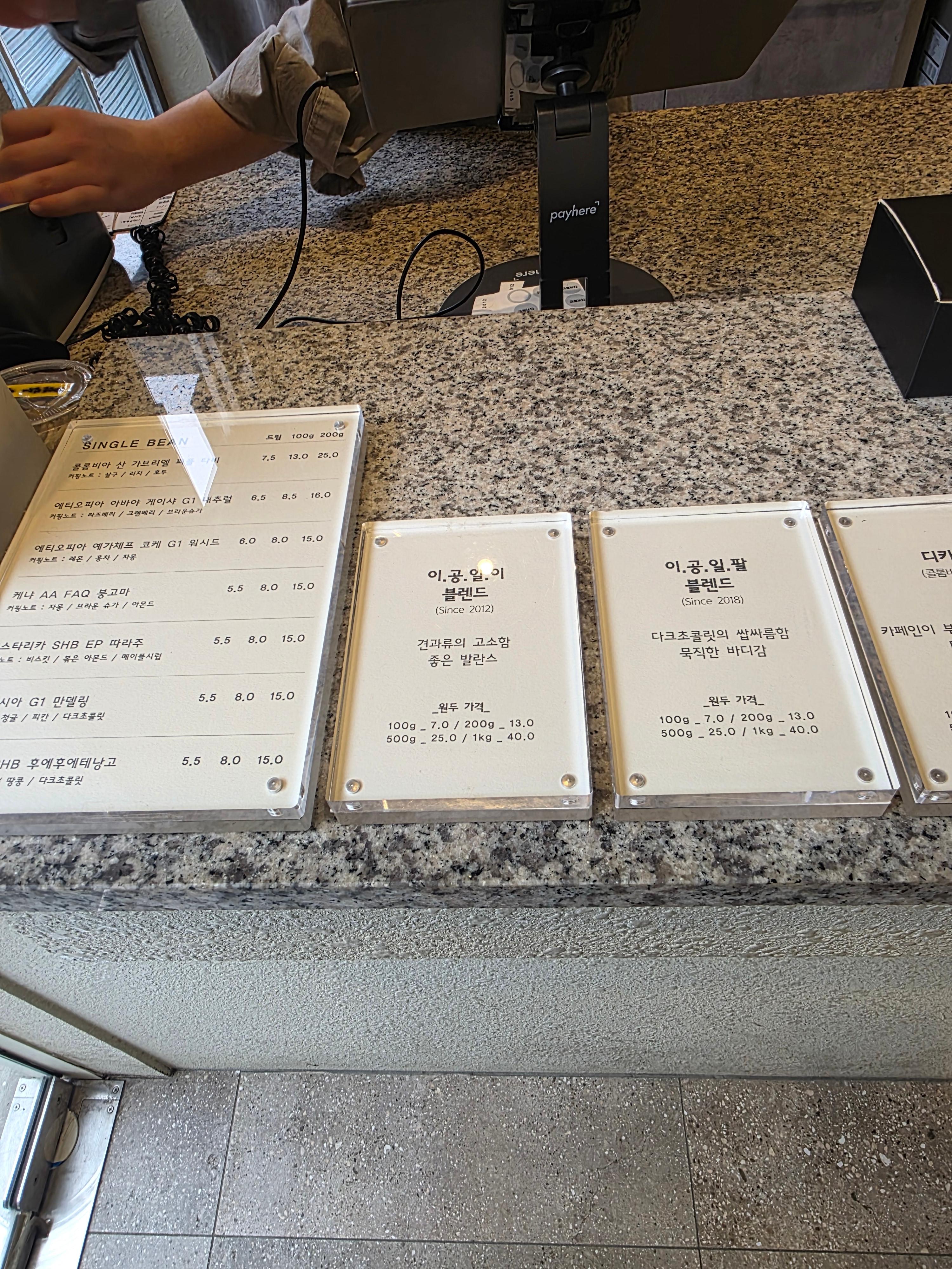 콩팩토리는 로스터리 카페답게 블렌드 원두를 두 가지로 운영하고 있었어요.