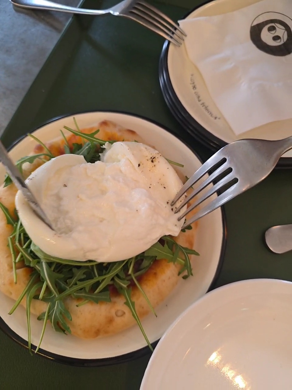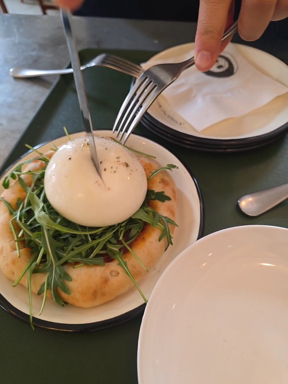 토마토소스 + 루꼴라 + 부라타 조합인데, 부라타 치즈가 진짜 미쳤어요…