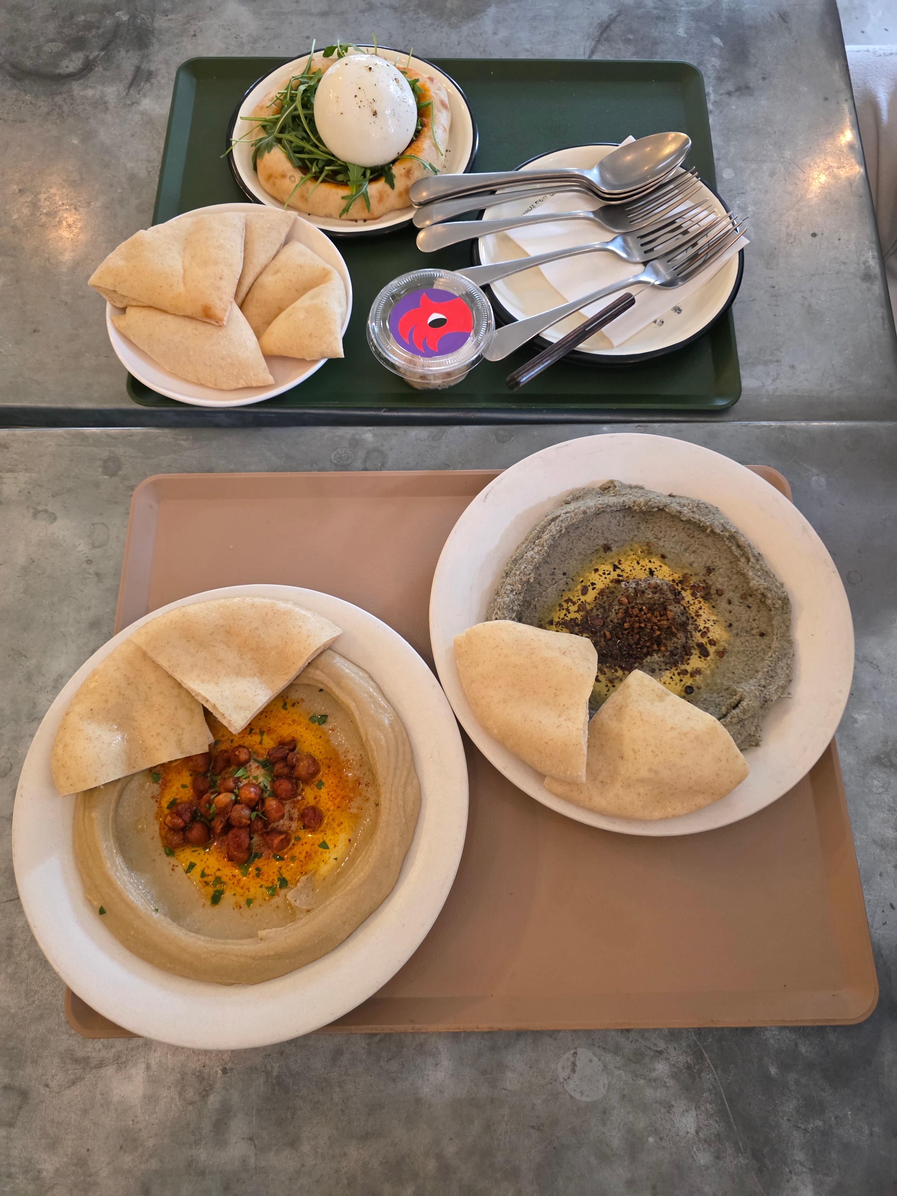 대표 메뉴는 후무스, 피타브레드, 부라타 브런치류였어요.