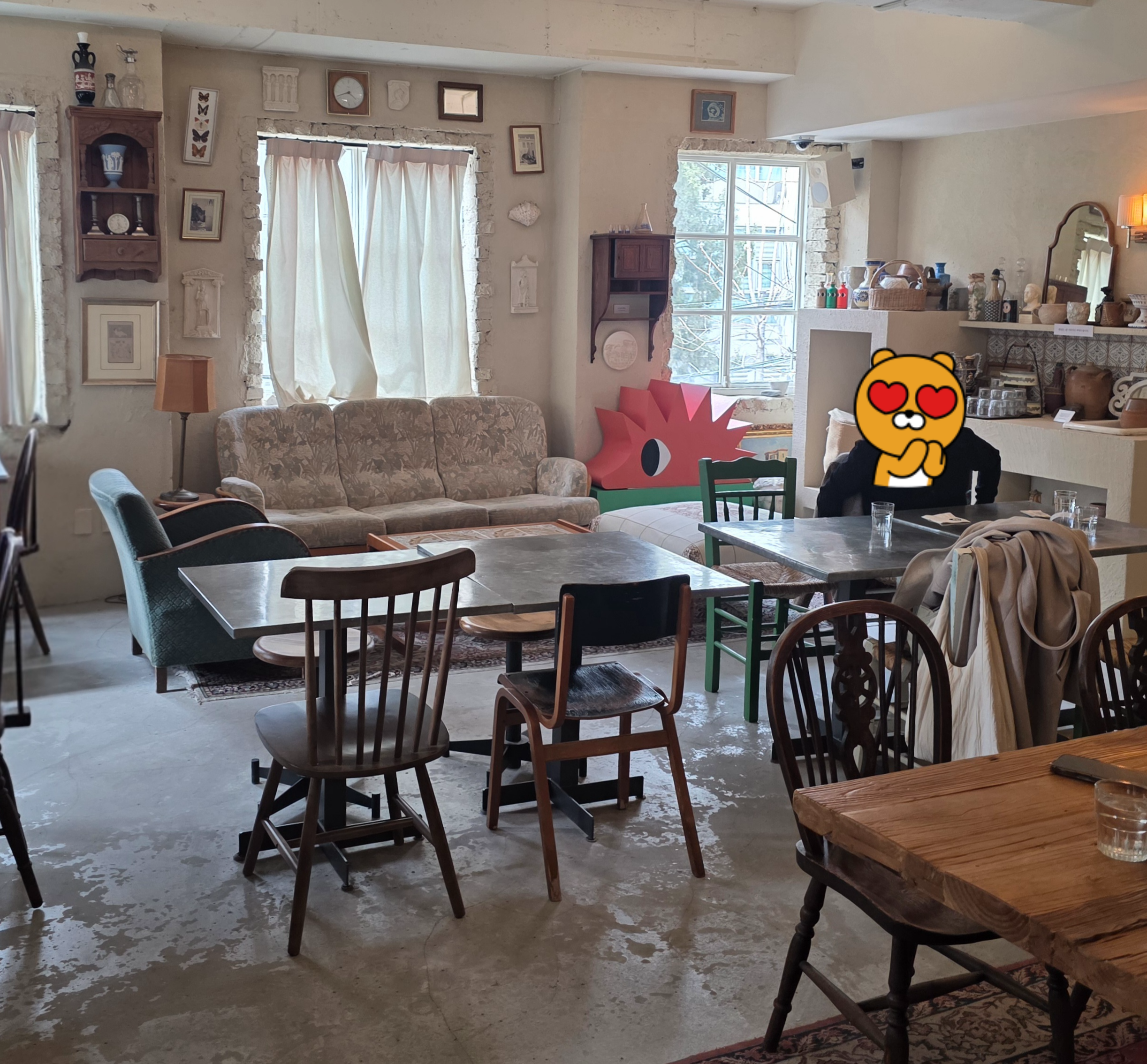 2층에 자리 잡았는데, 진짜 빈티지하면서 따뜻한 분위기라 오래 있고 싶어지는 느낌!