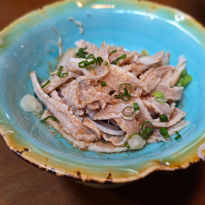 가장 먼저 나온 시로센마이(천엽 냉채)는 검은 천엽을 정성스레 손질해 뽀얀 색감으로 만든 뒤, 새콤한 폰즈 소스에 무쳐낸 요리였어요. 잡내 없이 아주 깔끔했고, 식감도 톡톡 씹히는 게 정말 신선했어요.