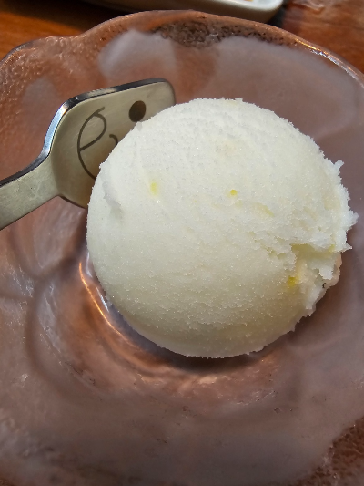 마지막 디저트는 유자셔벗.
