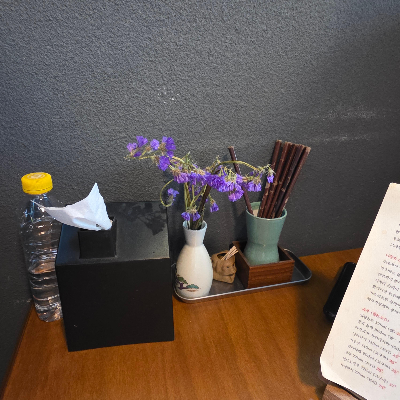 테이블에는 생화가 꽂힌 작은 꽃병이 놓여 있어 분위기가 더욱 포근했답니다.