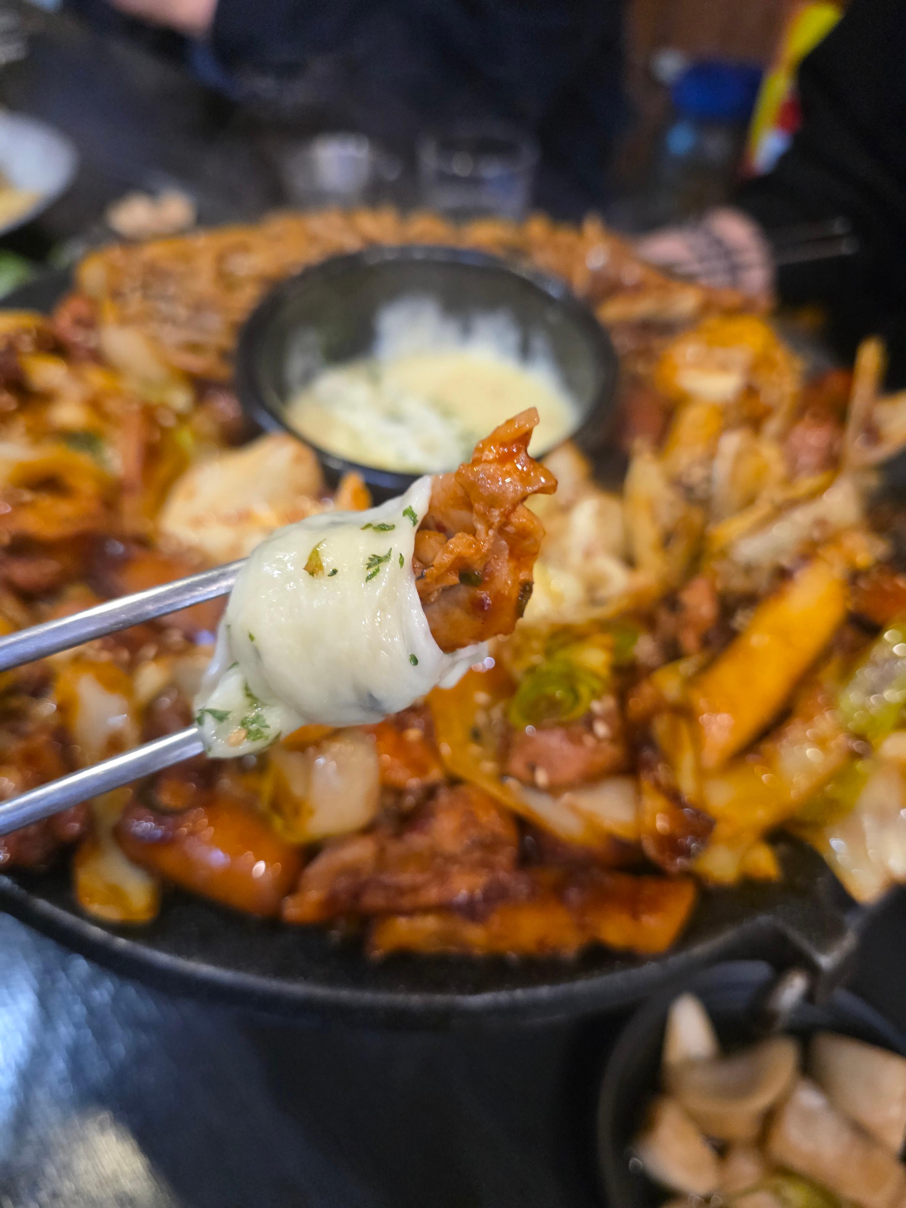 - 치즈 퐁듀: 치즈퐁듀는 이곳에서 꼭 주문해야 하는 메뉴입니다. 닭갈비를 찍어 먹으면 풍미가 확 올라가서 만족도가 높았습니다. 닭갈비를 치즈에 푹 찍어 먹으면 고소함이 폭발합니다. 매운맛도 잡아줘서 찰떡궁합!