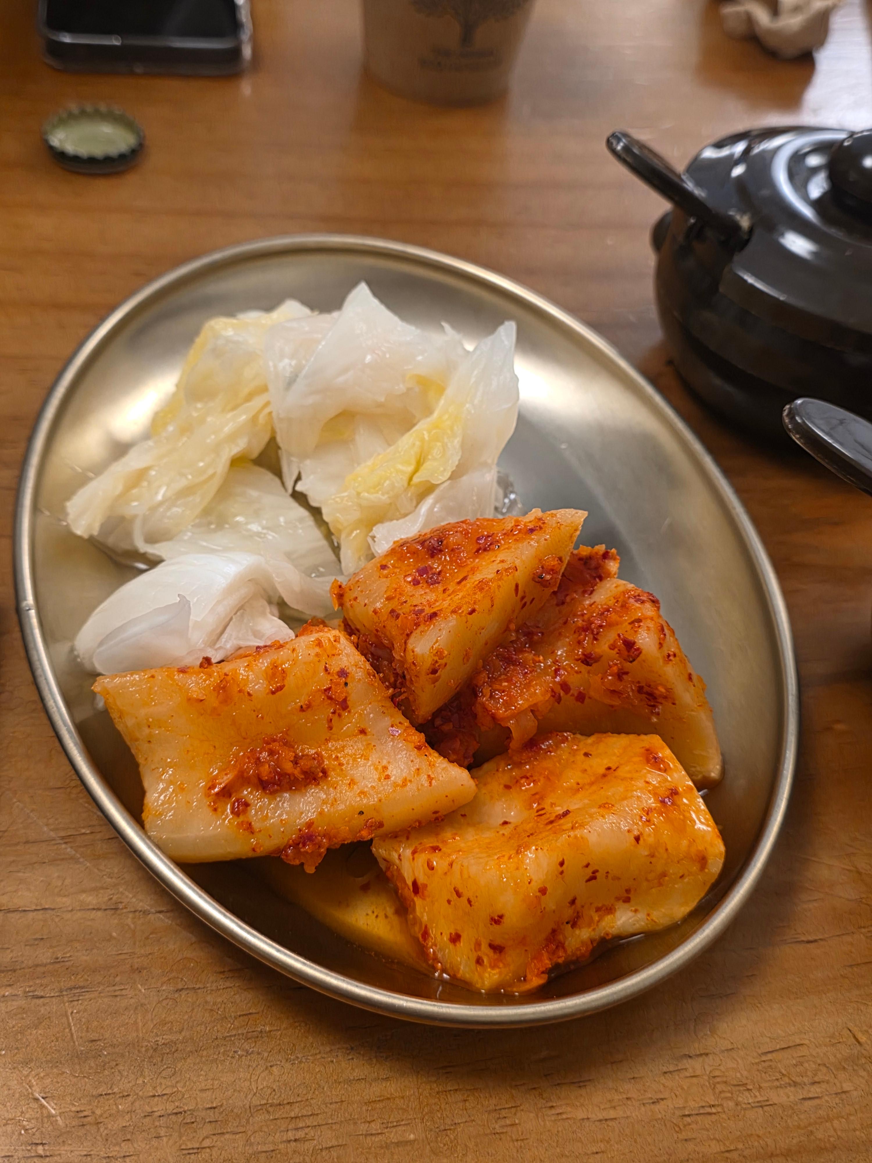 백김치는 식사 후 입가심으로 좋았고, 뭉티기와도 잘 어울리는 역할을 했습니다.