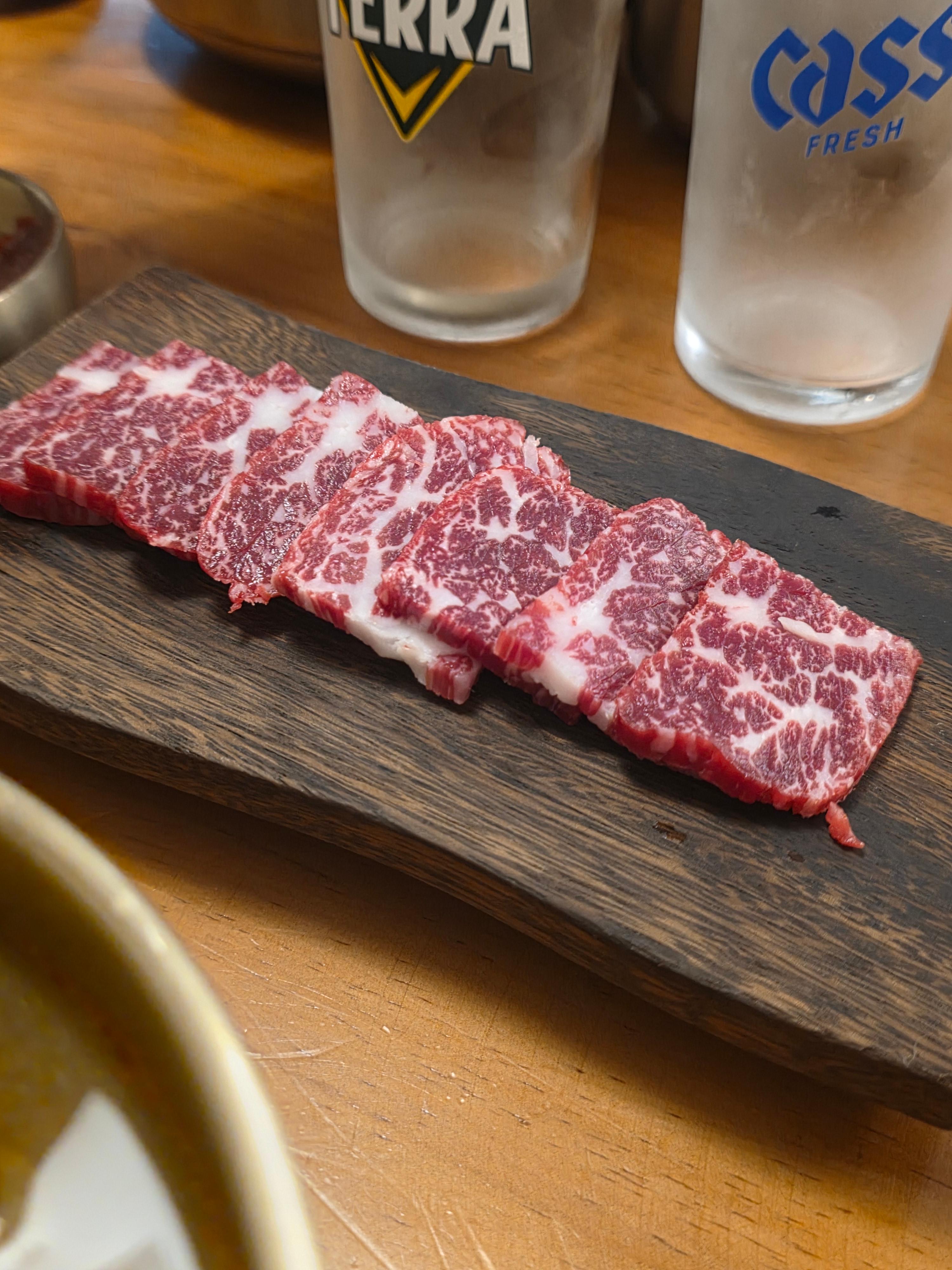 특히 뭉티기는 당일 도축한 한우를 사용하는 메뉴라서, 오후 5시 이후에만 주문이 가능한 한정 메뉴입니다.